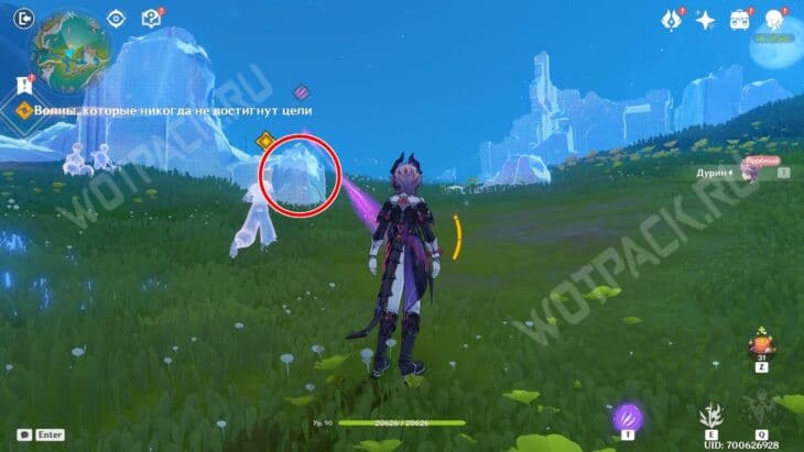 После осмотра подготовительных мероприятий переместитесь в столицу, воспользовавшись городской статуей Богини Луны. Недалеко от неё встретите алхимика Альбедо, дракона Дурина и светоносца Флинса. Как только окажетесь рядом с друзьями, они расскажут о появлении подозрительных фантомов в виде монстров Бездны.