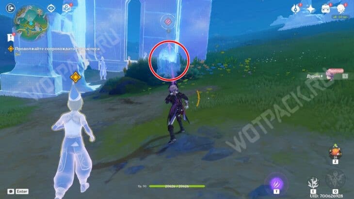 Следуйте за призрачным мужчиной. Как только он поравняется с руинами, воздействуйте на колонну клавишей особого действия «T», чтобы создать энергетический барьер.