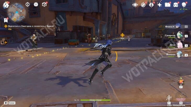 Выяснив всё необходимое, вернитесь в Нашгород и свяжитесь с Варкой. Магистр в компании Альбедо и Дурина стоит неподалёку от центральной площади. К обсуждению присоединится учёный из Академии Странник, который прибыл в Нод-Край, чтобы разузнать информацию о Дотторе.
