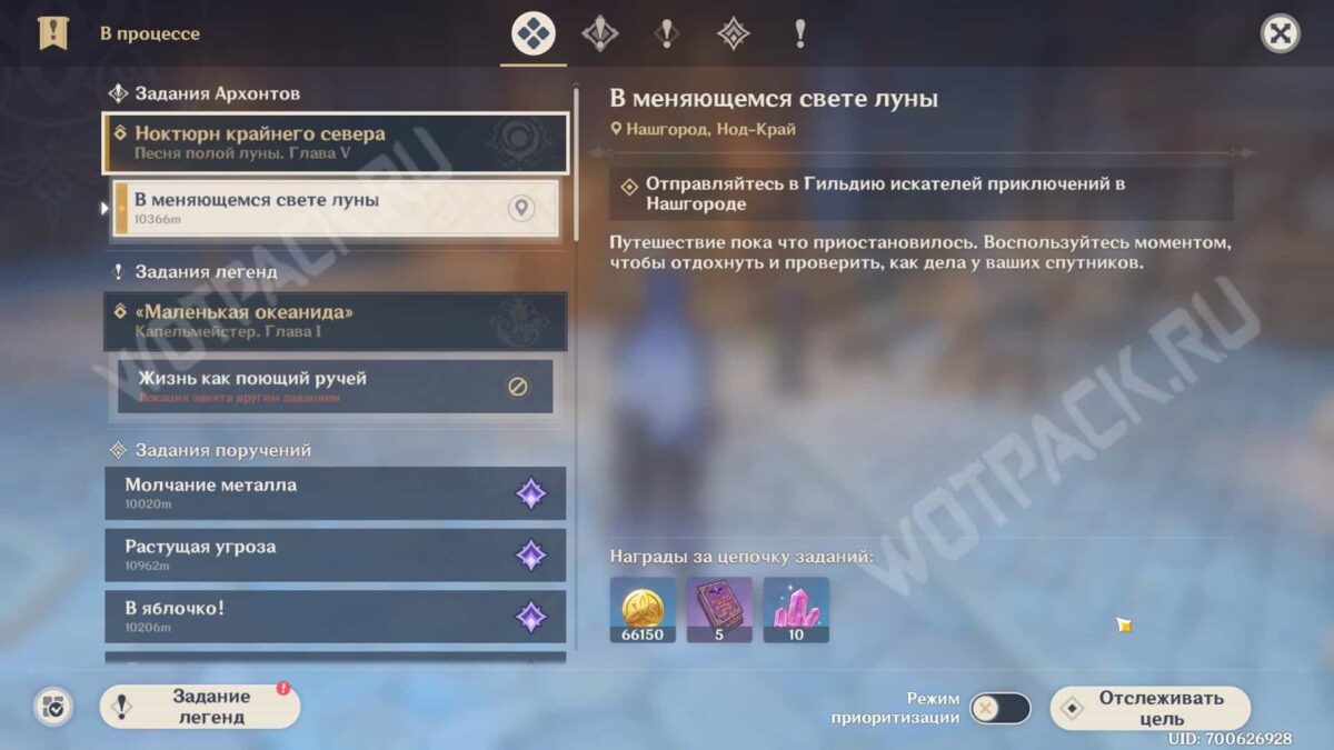 В Genshin Impact задание Архонтов Ноктюрн крайнего севера — пятая глава основной истории Нод-Края, являющаяся небольшой интерлюдией. Успешно справившись со страшной угрозой в лице Грешника Рери, команда наконец собирается расслабиться и изучить легенды о лунах, как вдруг снова происходят странные события.