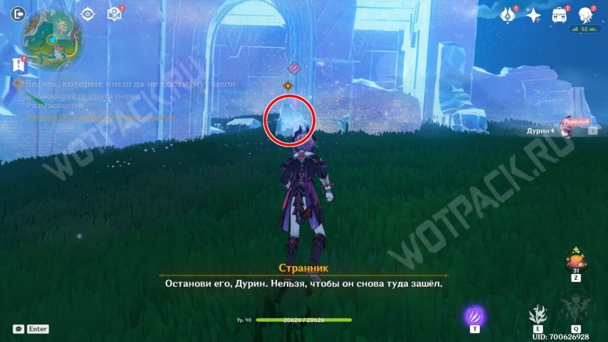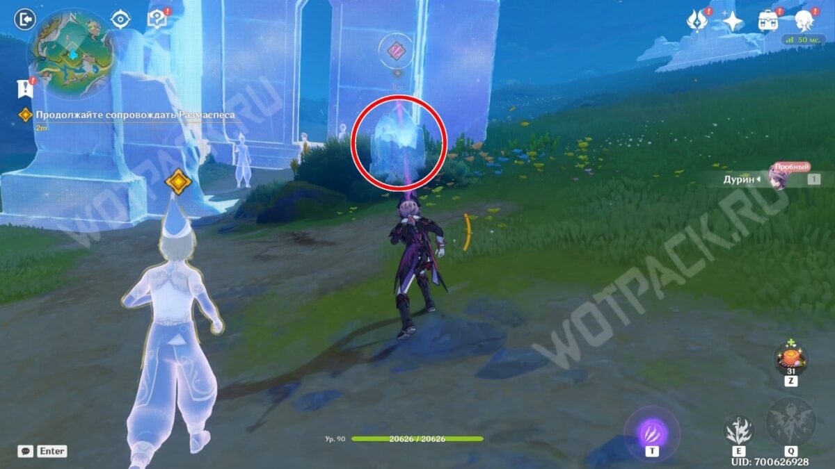 Следуйте за призрачным мужчиной. Как только он поравняется с руинами, воздействуйте на колонну клавишей особого действия «T», чтобы создать энергетический барьер.