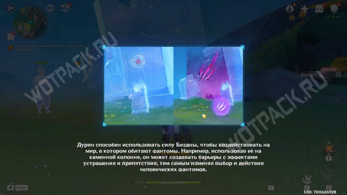 - Активируйте обломок колонны слева от фантома.