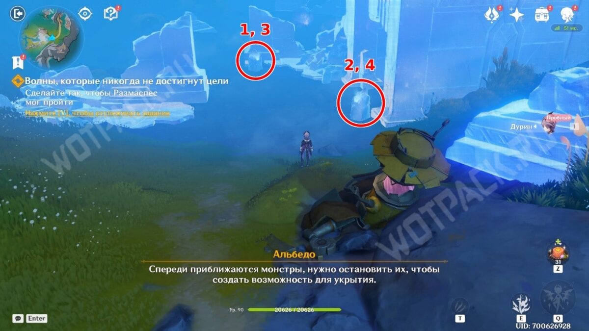 После осмотра подготовительных мероприятий переместитесь в столицу, воспользовавшись городской статуей Богини Луны. Недалеко от неё встретите алхимика Альбедо, дракона Дурина и светоносца Флинса. Как только окажетесь рядом с друзьями, они расскажут о появлении подозрительных фантомов в виде монстров Бездны.
