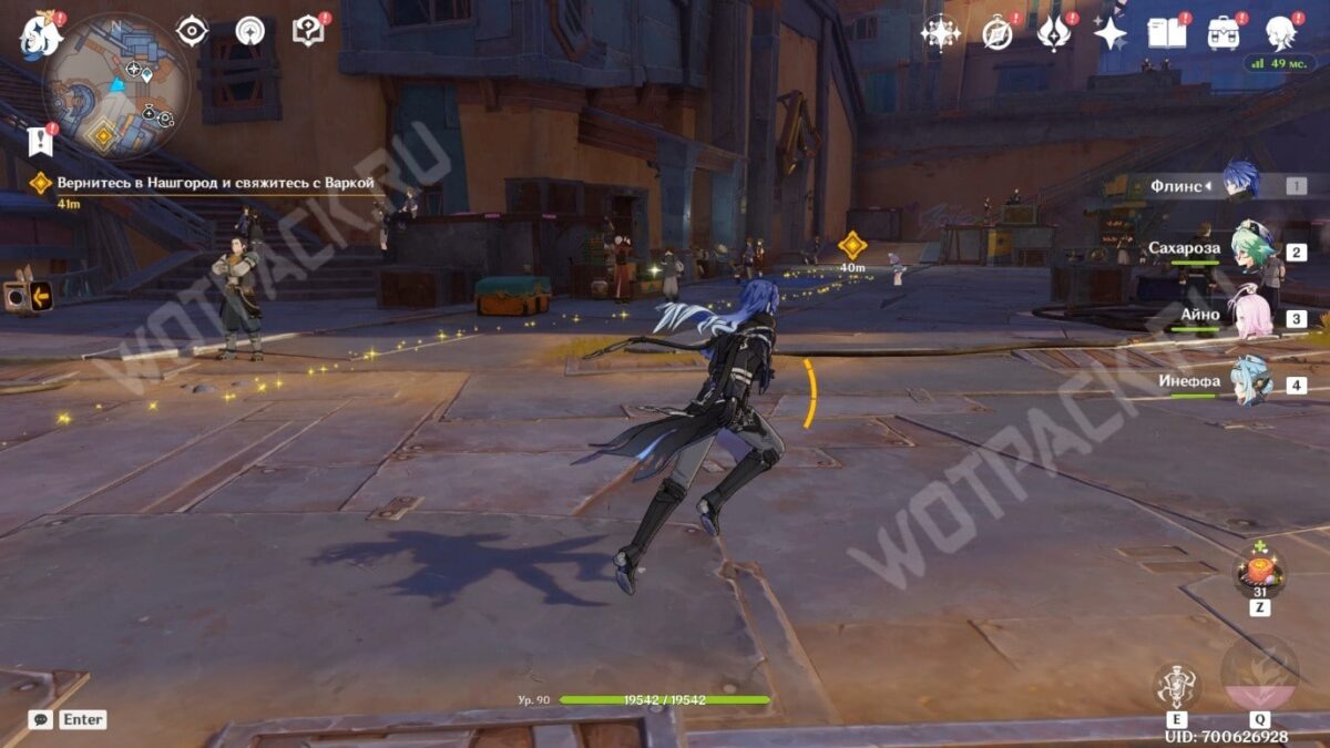 Выяснив всё необходимое, вернитесь в Нашгород и свяжитесь с Варкой. Магистр в компании Альбедо и Дурина стоит неподалёку от центральной площади. К обсуждению присоединится учёный из Академии Странник, который прибыл в Нод-Край, чтобы разузнать информацию о Дотторе.