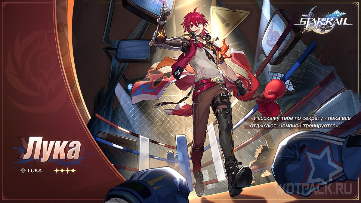 Лука (4⭐, Небытие: Физический) — чемпион по боксу и один из доверенных людей Дикого Огня. Как член непобедимой команды, юноша вдохновляет мечтателей из Подземья своей страстью. Релиз героя состоялся во второй фазе обновления 1.2, вместе с Кафкой.