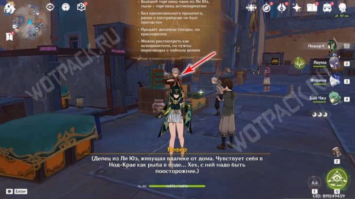 В разговоре девушка оценит внешний вид Нефер и поделится мнением о моде в Нод-Крае.