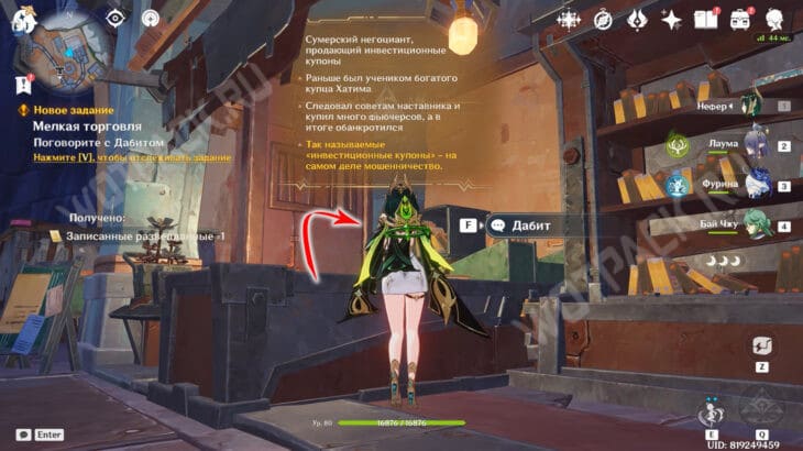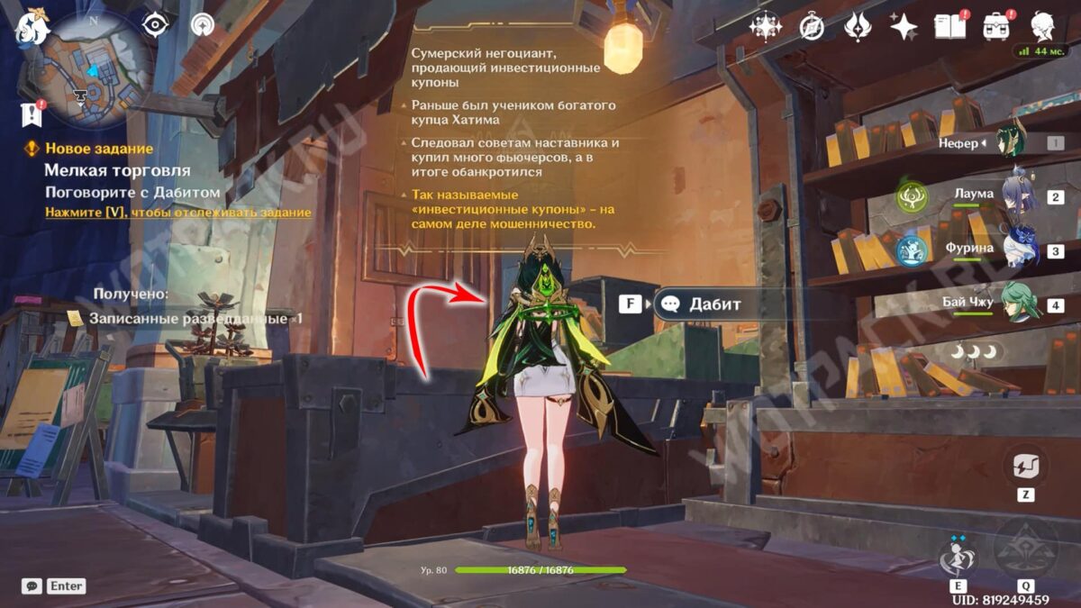 Добыть необходимые для открытия квестов показания удастся с помощью особых умений Нефер. Подойдите в Нашгороде к НПС со значком Куратории тайн над головой и используйте элементальный навык начальницы организации, нажав клавишу «E».