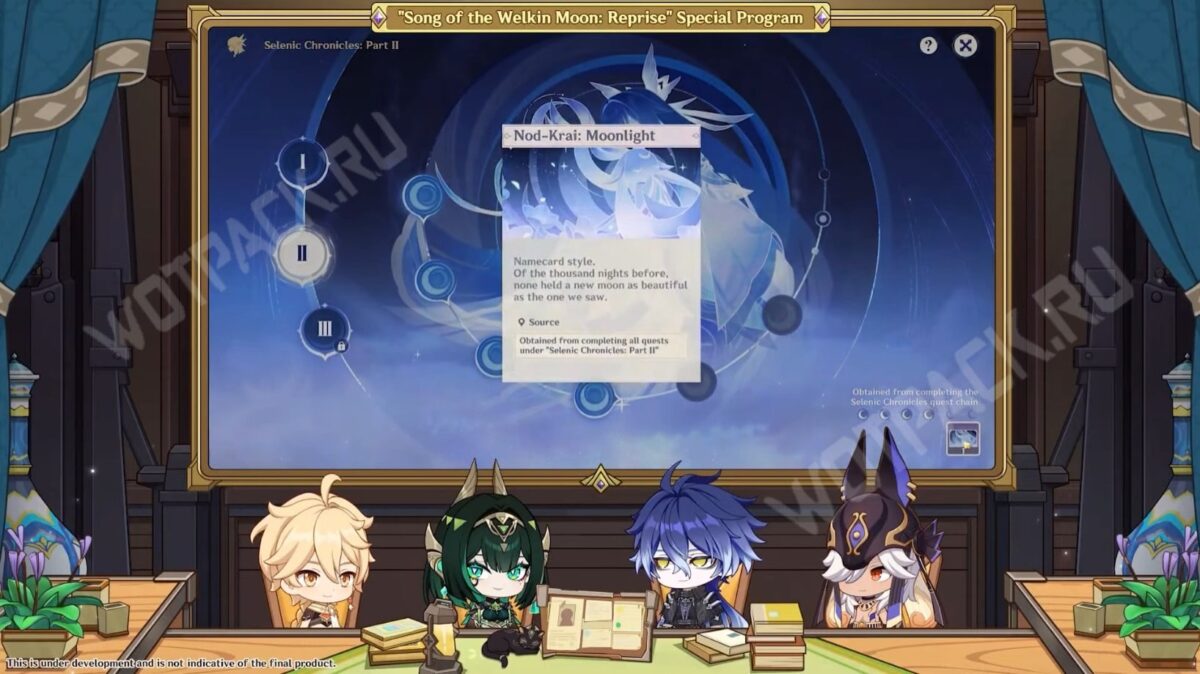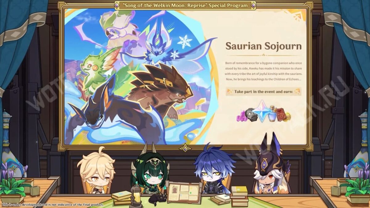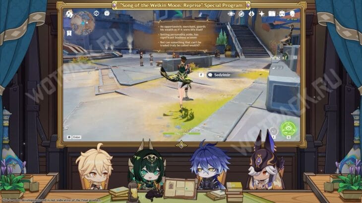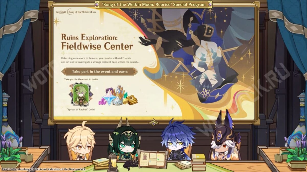 Главное событие обновления, которое пройдет в Сумеру и начнётся со странного происшествия в пустыне. Лайла отправилась наблюдать за звёздами, провалилась в зыбучие пески и попала в руины, из-за чего она стала говорить о странных вещах… и про Луны.