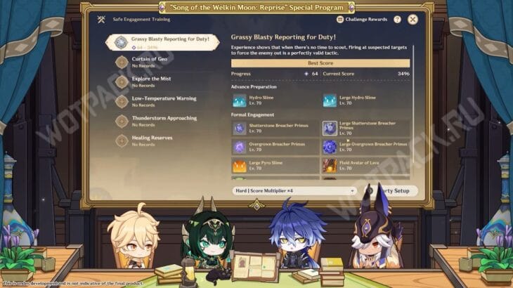 На этот раз на последнем этаже баффнут Дендро реакции и урон от базовых Пиро атак, что однозначно рассчитано на Нефер и Арлекино.