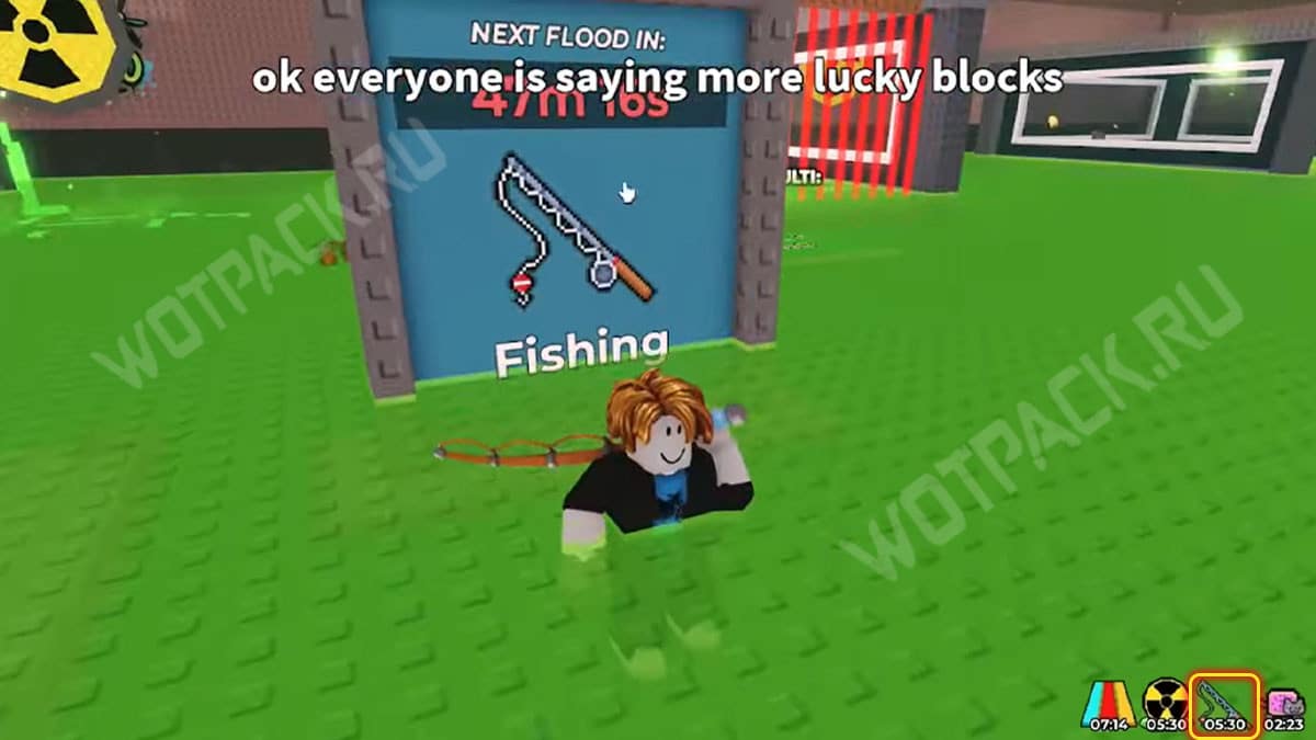 - Поместить в активный слот лучшую версию удочки из своего инвентаря.