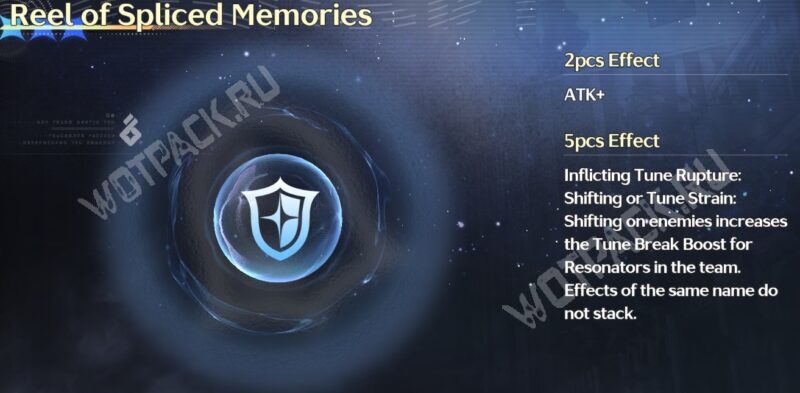 - «Reel of Spliced Memories» — сет, повышающий урон от «Tune Break» всех союзников, когда носитель вызывает эффекты «Rupture» или «Strain». Подойдет Дэнии в режиме «Strain», когда она играет вместе с Люком Херрсеном.