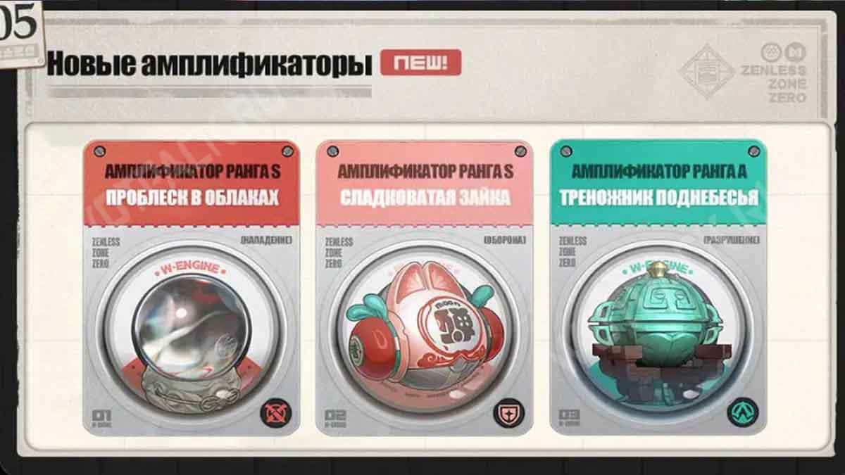 В разделе «Амплификация» будут доступны «Проблеск в облаках» (5⭐, Нападение), «Сундук сокровищ» (4⭐, Поддержка), «Бум-пушка» (4⭐, Поддержка) или «Сладковатая зайка» (5⭐, Оборона), «Аккумулятор Демары II» (4⭐, Устрашение), «Большой цилиндр» (4⭐, Оборона)