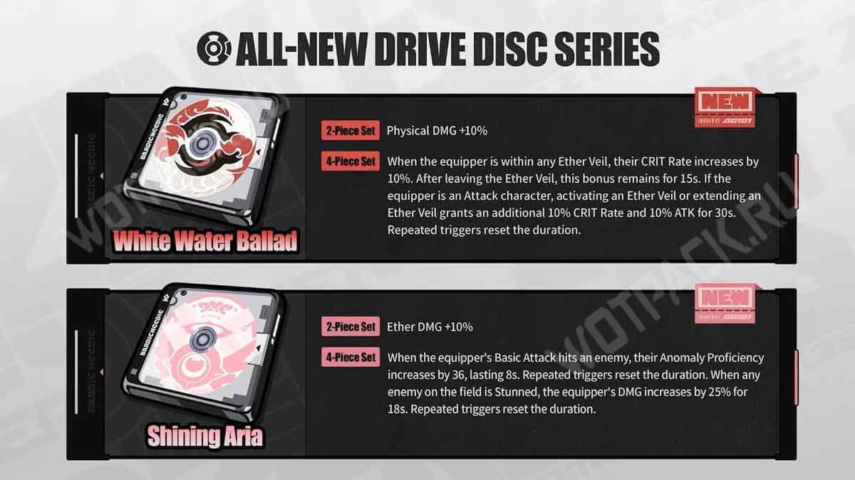 - Песнь о синих водах — комплект для персонажей Нападения, взаимодействующих с Эфирной завесой. Получают бонусный крит. шанс и АТК при её активации или продлении.