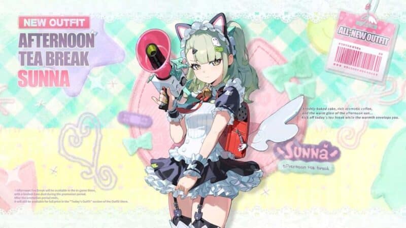 Выходящие героини сразу обзаведутся альтернативными костюмами: для Санны выпустят наряд горничной «Послеобеденный чай», а для Арии — платье «Диссонанс» в черных и малиновых тонах. Платные наряды в период версии можно приобрести по цене 1350 монохромов, после окончания баннеров она повысится до стандартных 1680 донатной валюты.