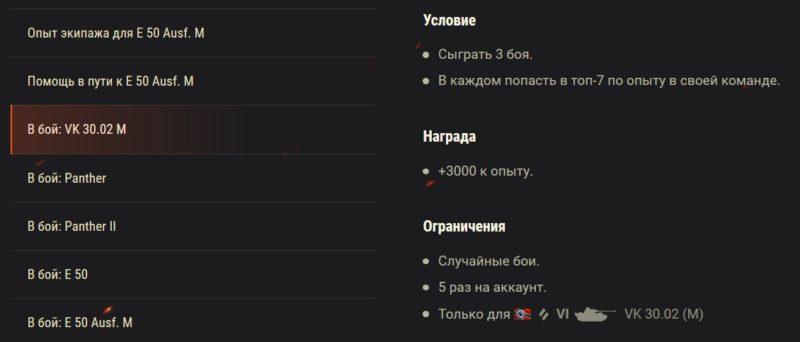 В сентябре снова возвращается акция «В бой», длительность которой продлили до одного месяца. Техника по ветке E 50 Ausf. M получила индивидуальные боевые задачи и скидки с 6 по 10 уровни. Как и раньше для выполнения предлагаются общие задачи, которые можно выполнять в процессе прокачки ветки (прогресс суммируется).