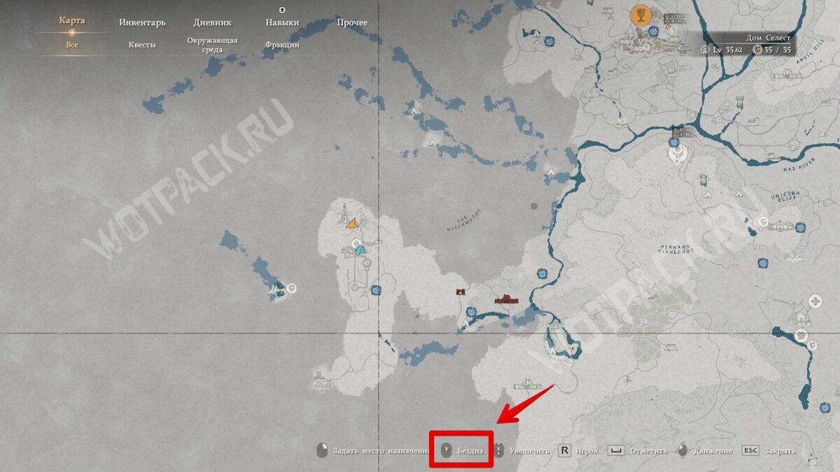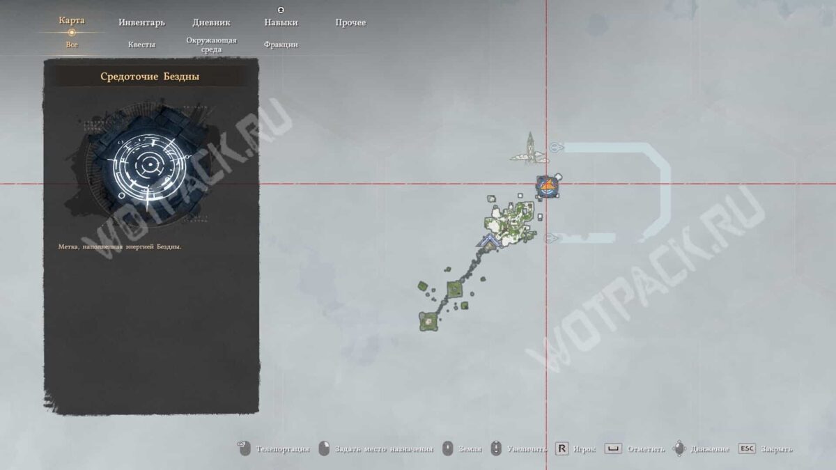 Откройте карту земли и нажмите на колесо мыши, чтобы отобразить плавающие острова Бездны и вернуться к месту испытания. Если забыли активировать телепорт, то найдите врата на вершине Звёздного шпиля.