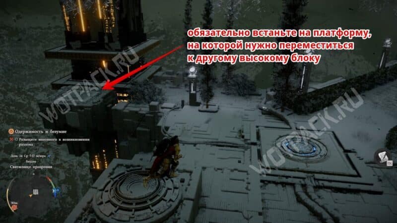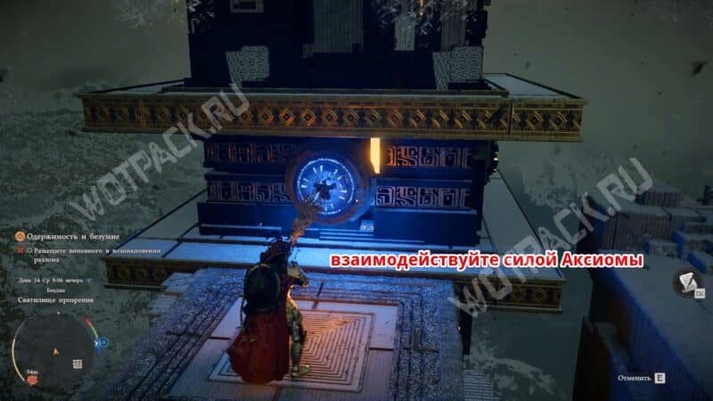 - Встаньте на квадратную платформу, наведите на круглый механизм и нажмите клавишу «TAB», чтобы активировать силу Аксиомы (левый стик на геймпаде).