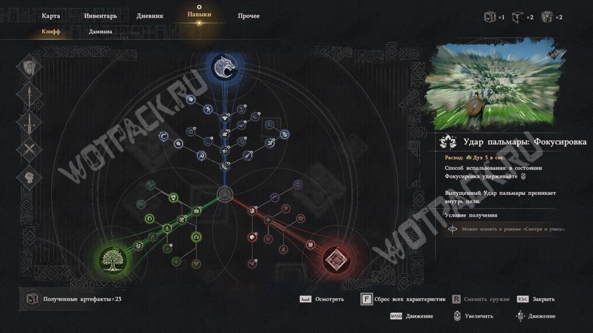 Если ещё не изучили эту способность, то от телепорта института Схоластоун бегите к тропе южнее. Перед радужными кристаллами увидите силуэт, у которого сможете выучить «Удар пальмары: Фокусировка».