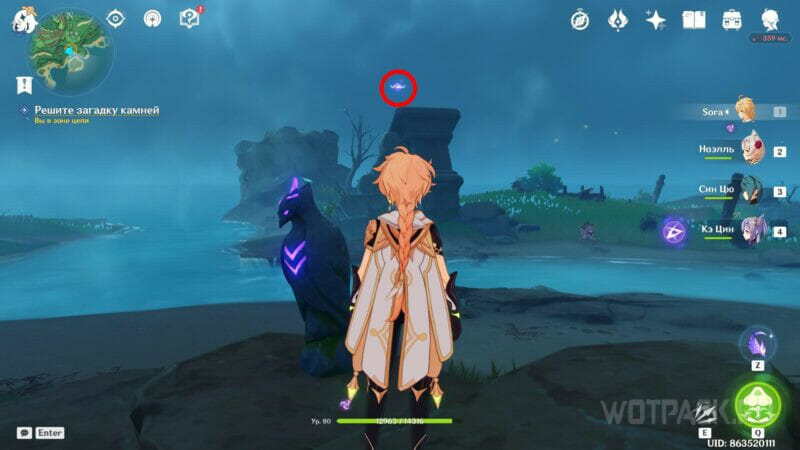 Для решения загадки с камнями используйте Странное перо на статуе птицы, стоящей с левой стороны от камней. Из нее появится Электро фея, которую нужно сопроводить.