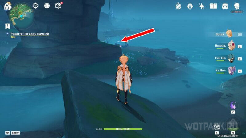 Воспользуйтесь статуей семи Архонтов и отправляйтесь на остров Цуруми. Двигайтесь на запад в сторону телепорта и пройдите через ворота, чтобы развеять туман. Карта очистится, и видимость станет лучше, благодаря чему можно будет комфортно продолжать исследование локаций. Продолжайте идти вперед пока не увидите мальчика Ру.