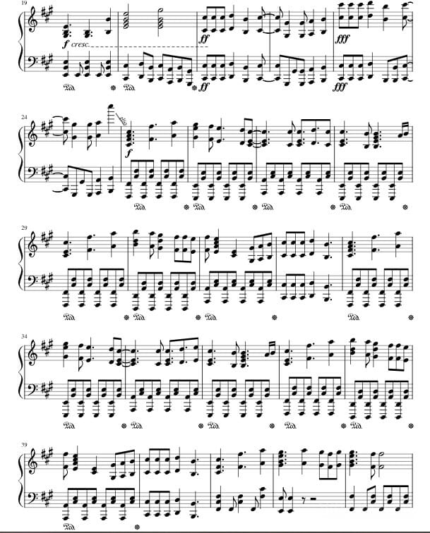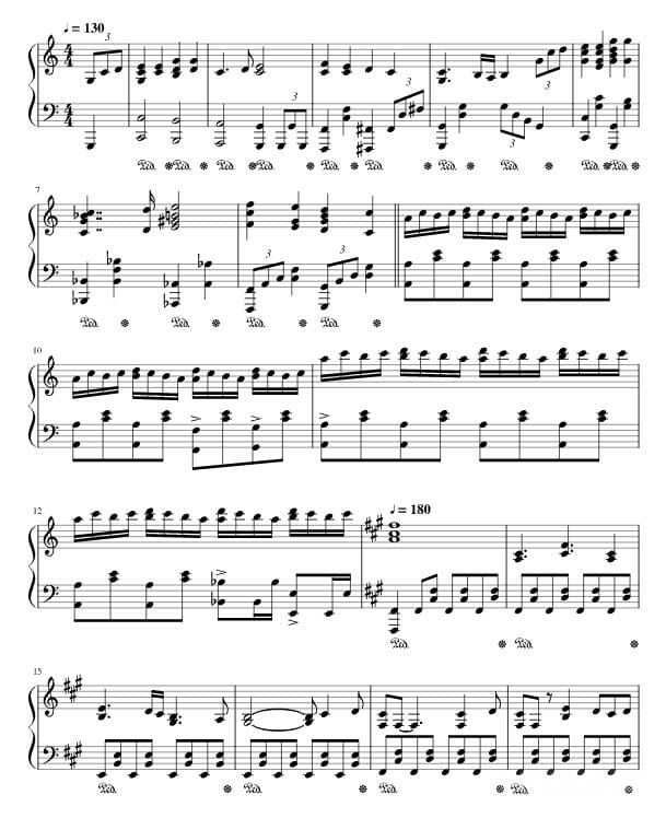 Если хотите самостоятельно исполнить данную композицию на пианино, можете воспользоваться нотами под аранжировкой pyrobrainiac.