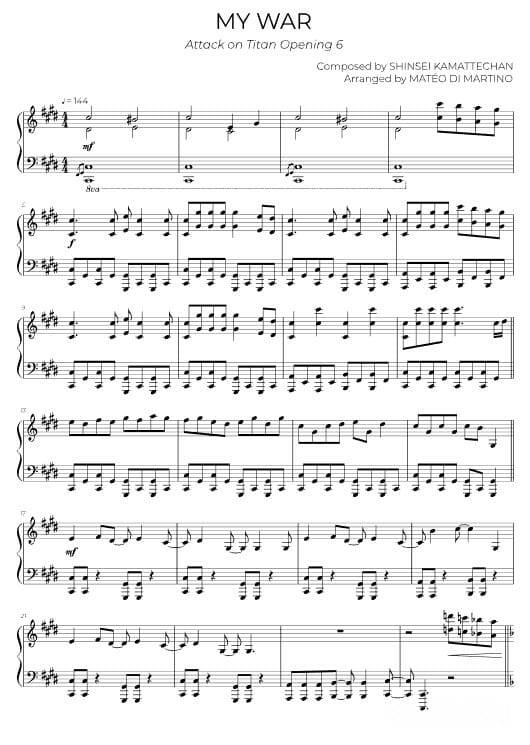 На скриншотах представлены ноты для композиции «My war», выполненные под аранжировкой Mateo Di Martino.