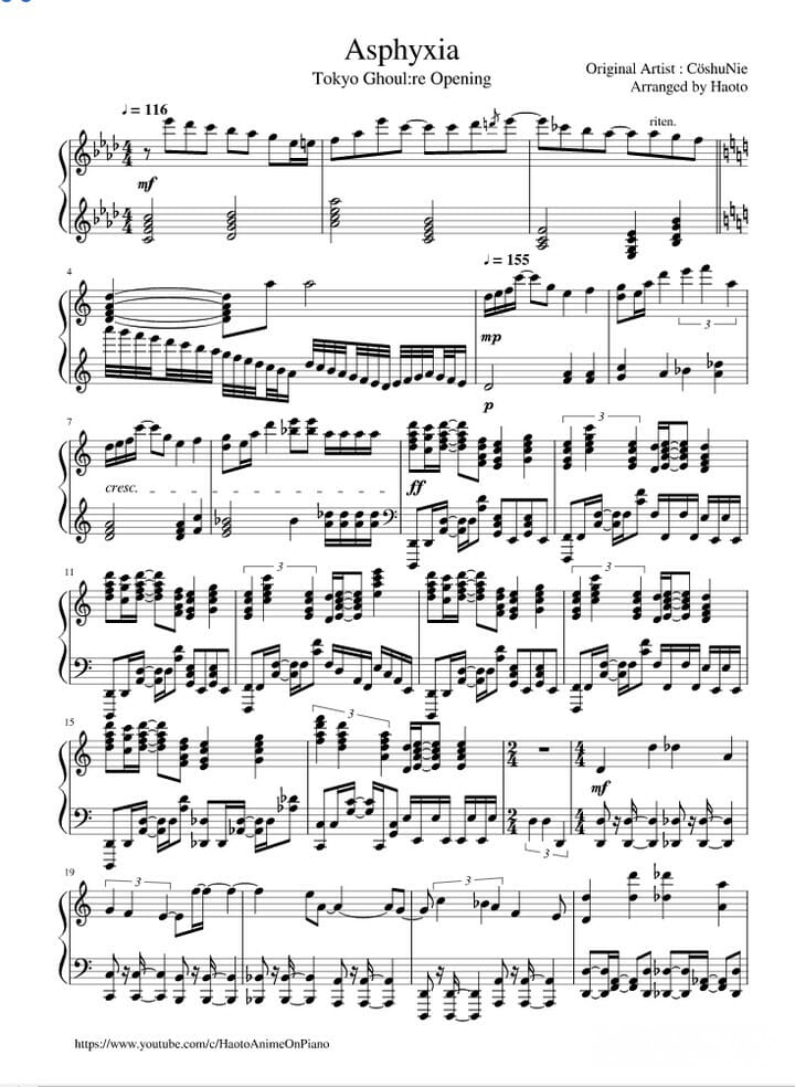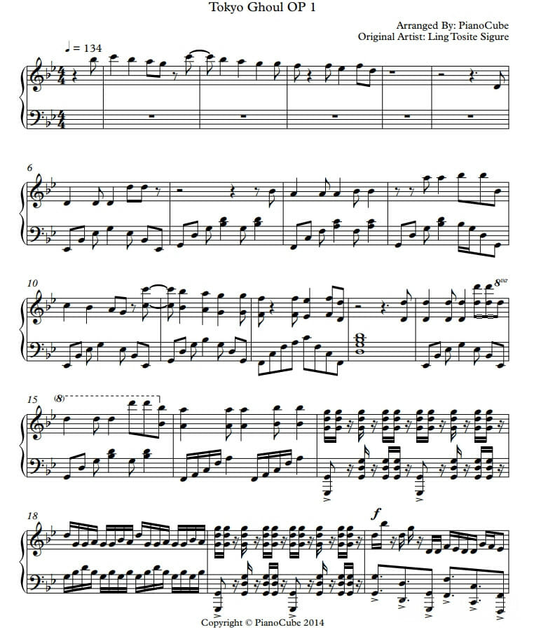 Музыканты также могут сыграть саундтрек Токийского гуля на пианино, воспользовавшись нотами под аранжировкой PianoCube: