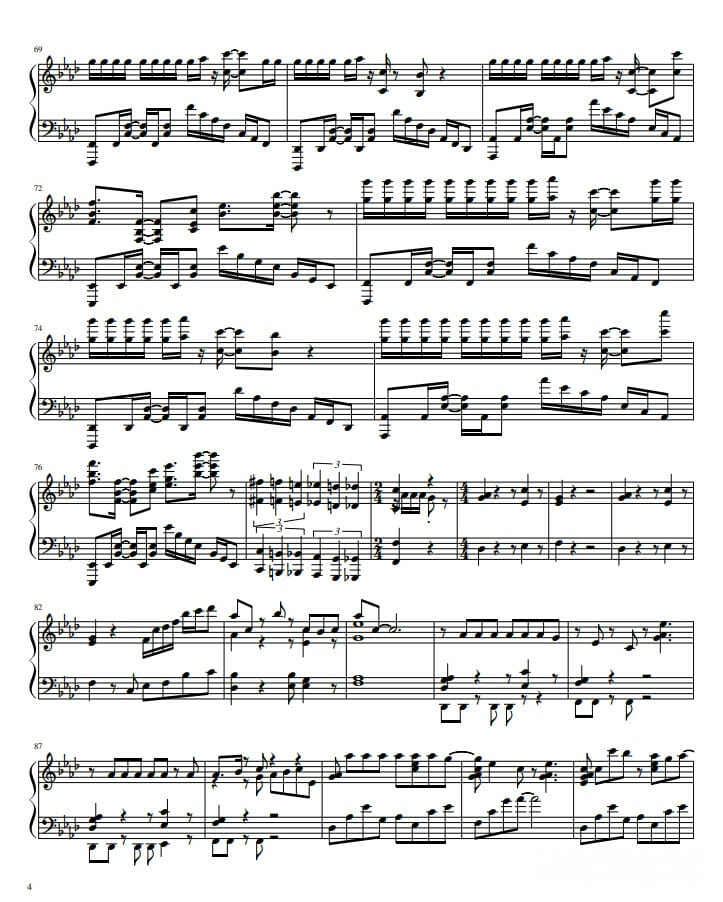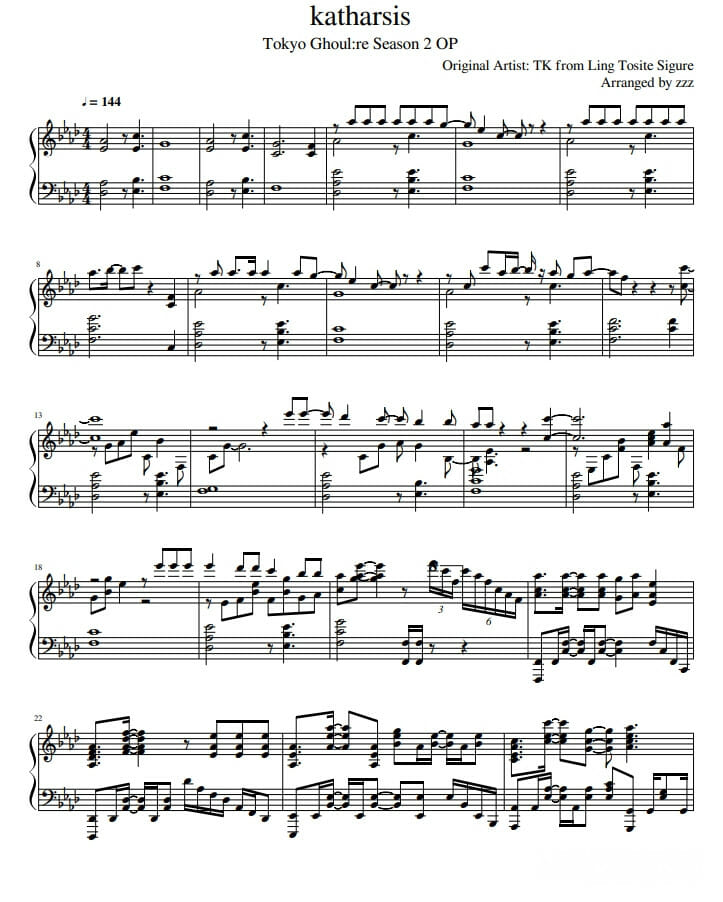 Далее представлены ноты опенинга «katharsis» для пианино под аранжировкой zzz: