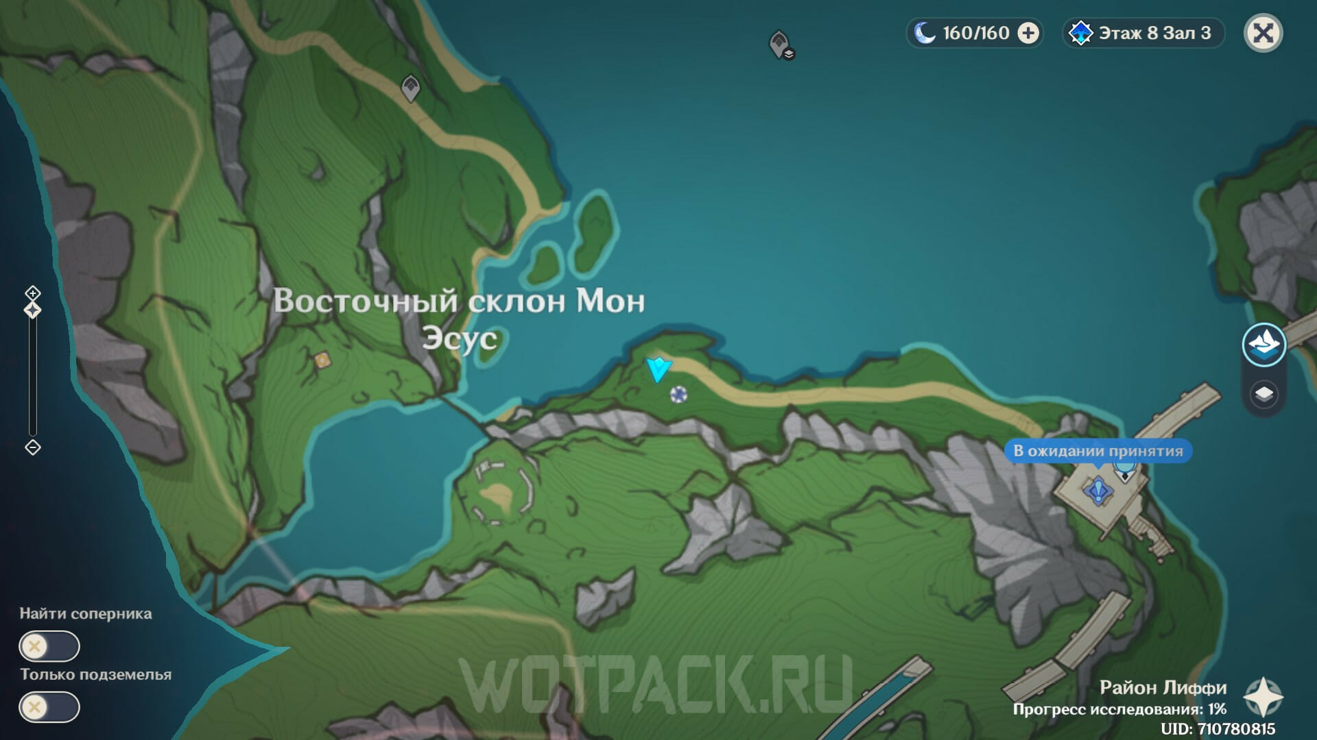 Переместитесь к телепорту на севере от Нового Исследовательского института Фонтейна. Двигайтесь вверх по склону в северо-восточном направлении, пока не обнаружите противника, бродящего по холму.