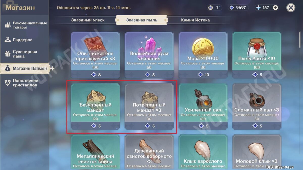 При наличии валюты, оставшейся после совершенных в баннеры круток, можно купить некоторое количество материалов за Звездный блеск или Пыль. Перейдите в соответствующие разделы магазина и потратьте накопившиеся средства. Всего потребуется по 5/15 пыли или 2 блеска на единицу ресурса при максимальном лимите в сутки на 16/12/8 штук (от базового к наиболее редкому).