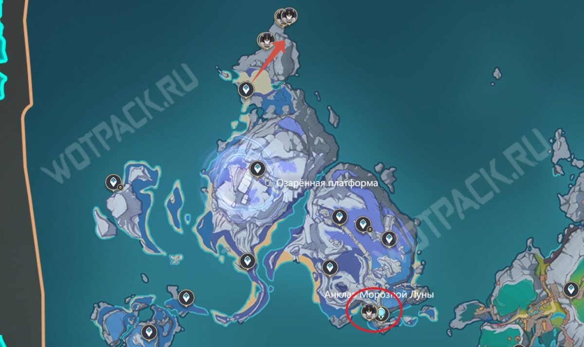 На локации, принадлежащей последователям богини Луны, наткнетесь на восемь опричников возле статуи семи Архонтов и у водной границы, откуда легко добраться от точки перемещения рядом.