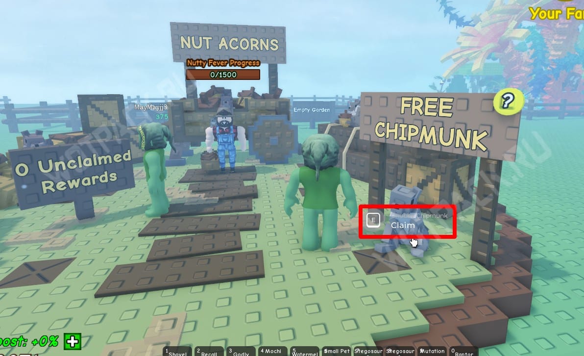 Подойдите к островку в центре карты и заберите бесплатного бурундука: основная механика мероприятия завязана на взаимодействии со зверьком. Разместите его на ферме и позвольте расти вместе с остальными помощниками. Добившись желаемого результата, сможете обменять малыша на награды, редкость которых будет зависеть от веса.