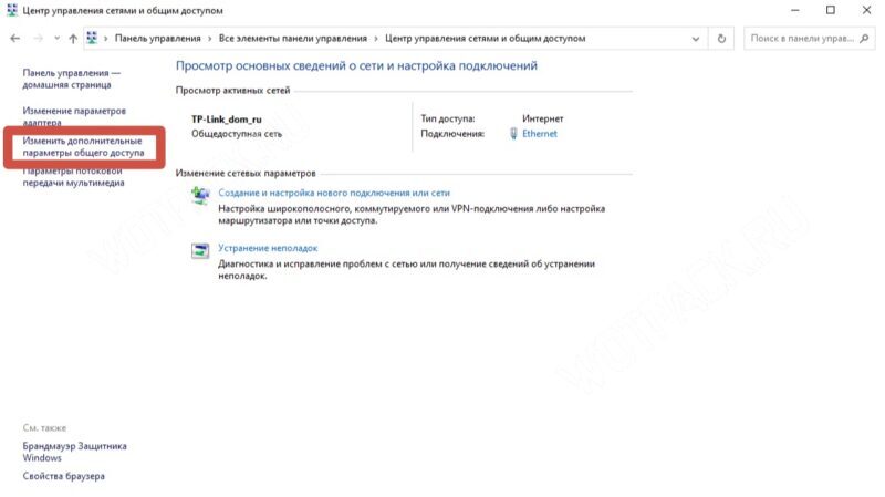 - Откройте «Центр управления сетями и общим доступом» и перейдите к вкладке «Изменение параметров адаптера».
