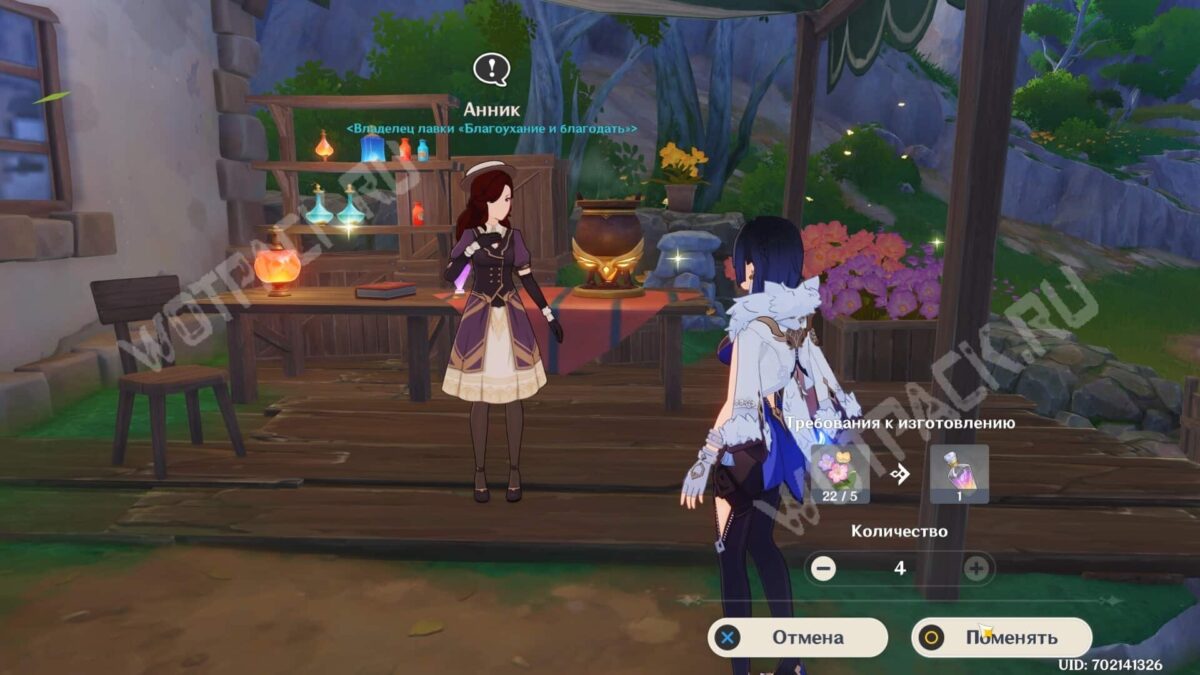 Чтобы закрыть все цели, понадобится четыре флакона. Выберите нужное число и передайте девушке 20 ветроцветов. Взамен получите четыре бутылочки с «Особым парфюмом», которые появятся в разделе «Задание» инвентаря.
