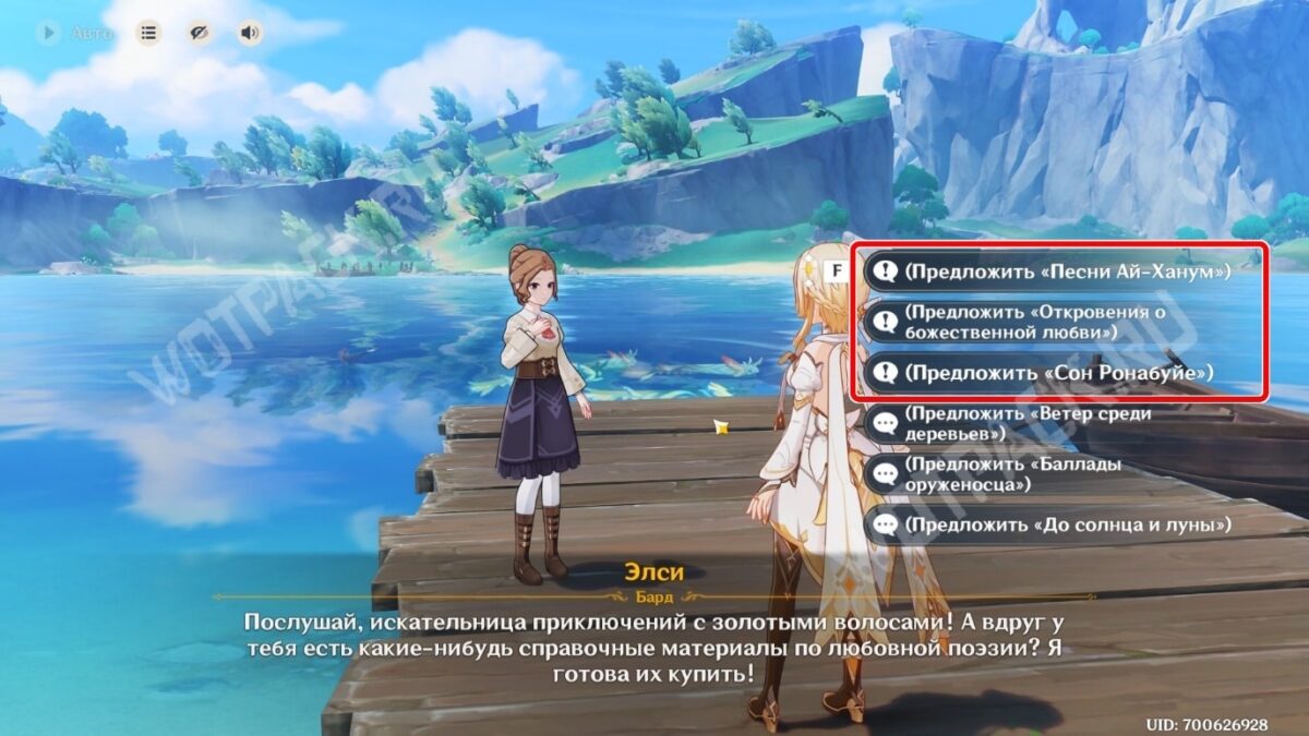 Ему понравится парфюм Путешественника, после чего сможете подарить аромат. В благодарность он отдаст сборник стихов «Сон Ронабуйе».