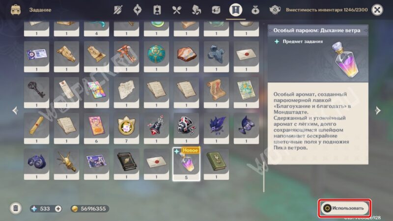 Для чего нужен «Особый парфюм: Дыхание ветра» в Genshin Impact