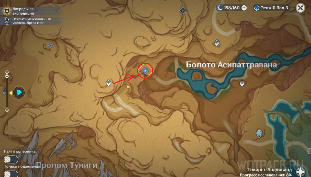 Отправляйтесь ко входу в подземные руины, который находится на востоке от Болота Асипаттраваны. Пройдите по тропинке и окажетесь у маркера квеста. Как только приблизитесь к огромному барьеру, Соруш применит свою силу и откроет путь дальше.