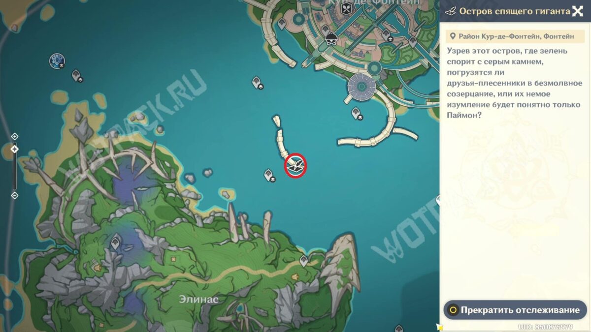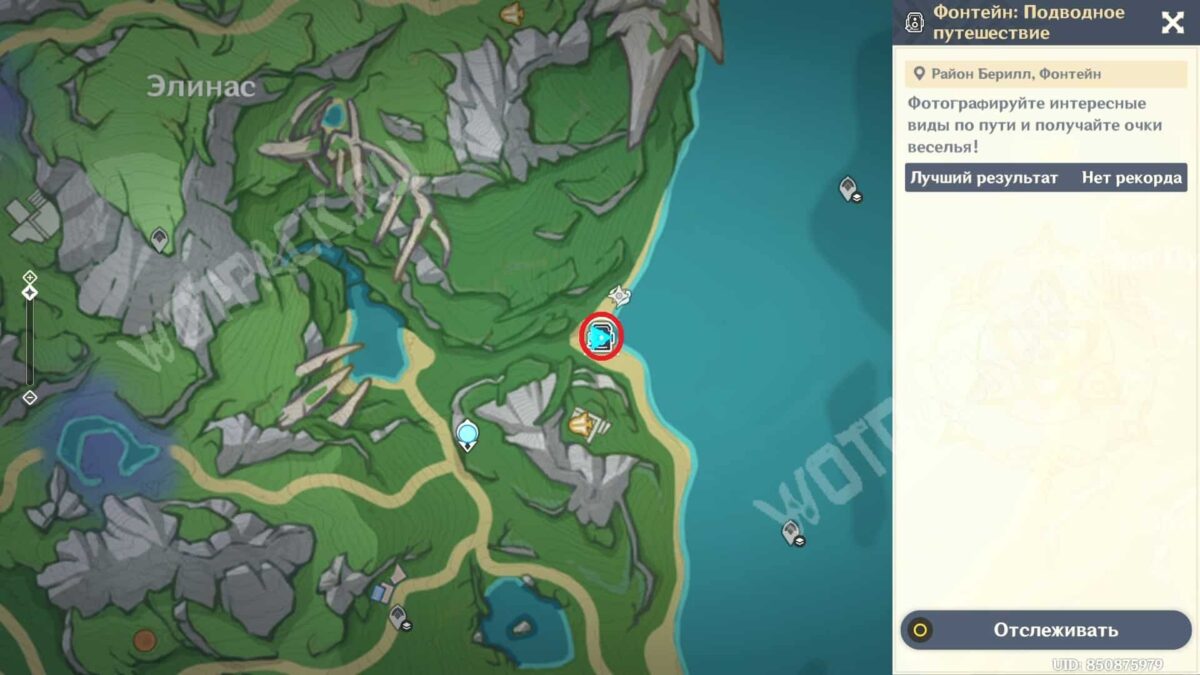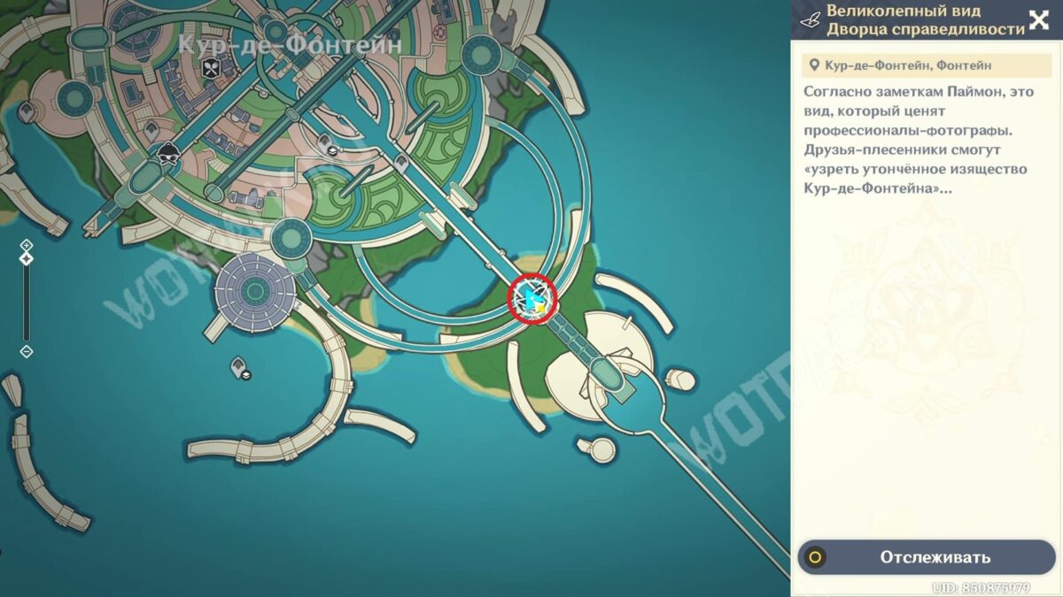 Следующая остановка — Фонтейн. Следуйте за маячком промежуточного квеста «Экскурсия по Фонтейну» к подводному порталу, который поможет добраться до точки обзора.