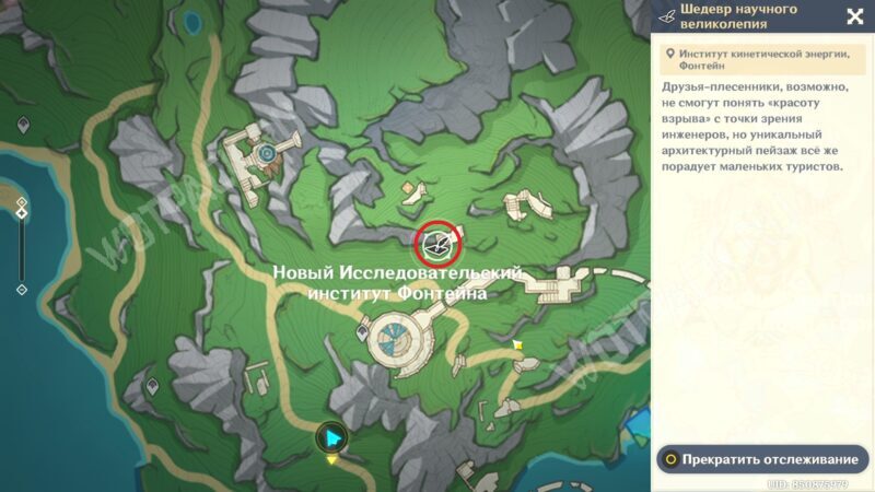 Очередное место с достопримечательностями находится в области Научного института Фонтейна. Переместитесь от любого удобного телепорта и заберитесь на конструкцию с меткой. Чтобы закрыть пробелы в творении Паймон, следуйте простому алгоритму: