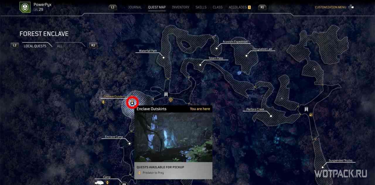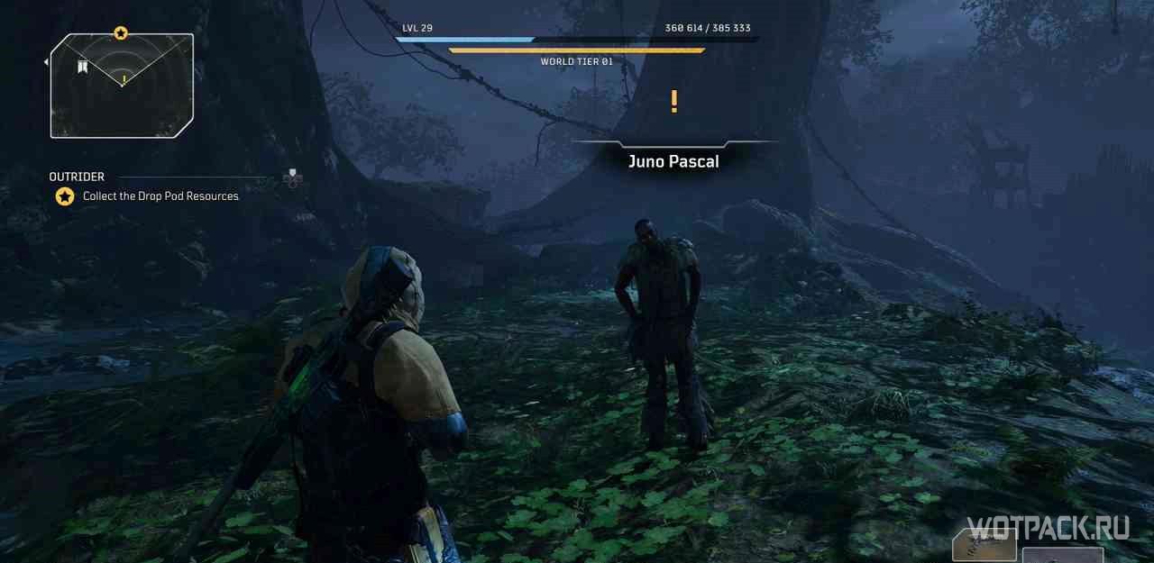 Для начала миссии надо поговорить с Джуно Паскалем в лагере этой местности (при приближении появится желтый восклицательный знак).