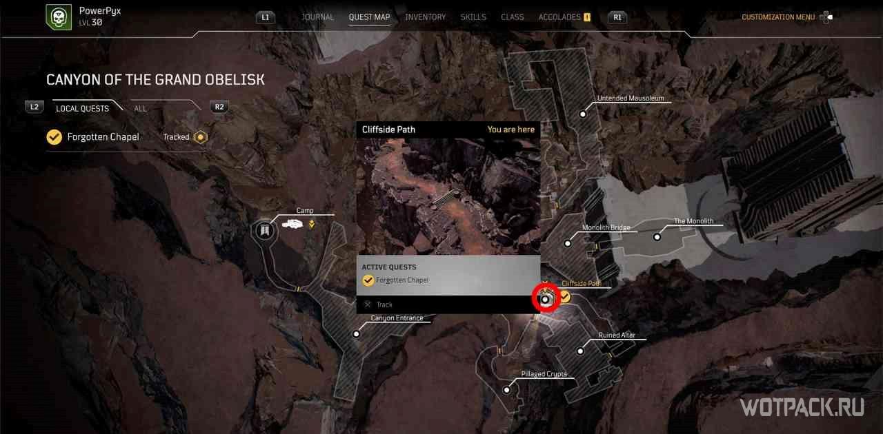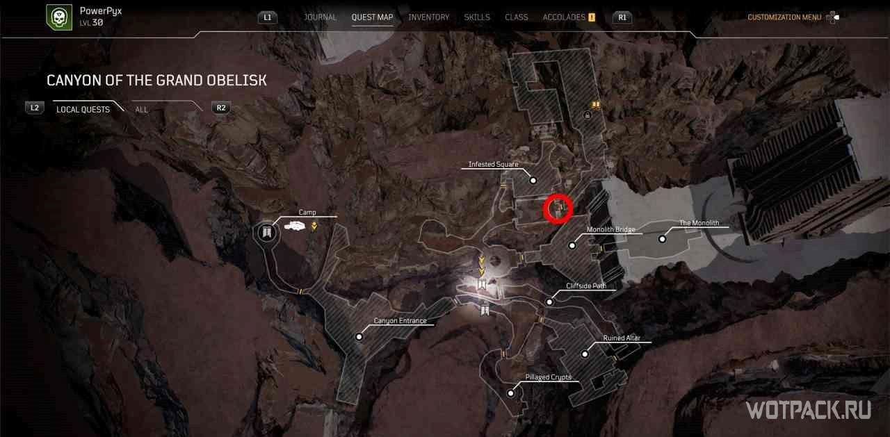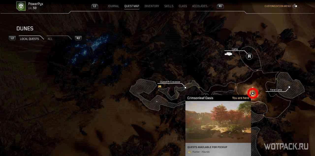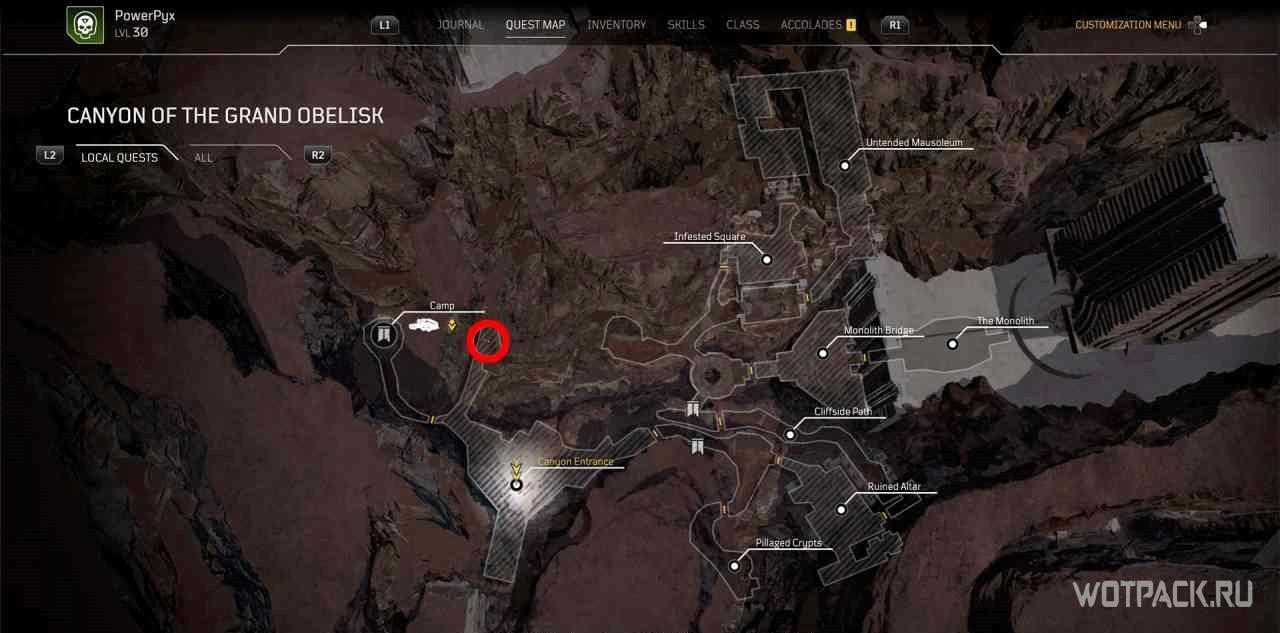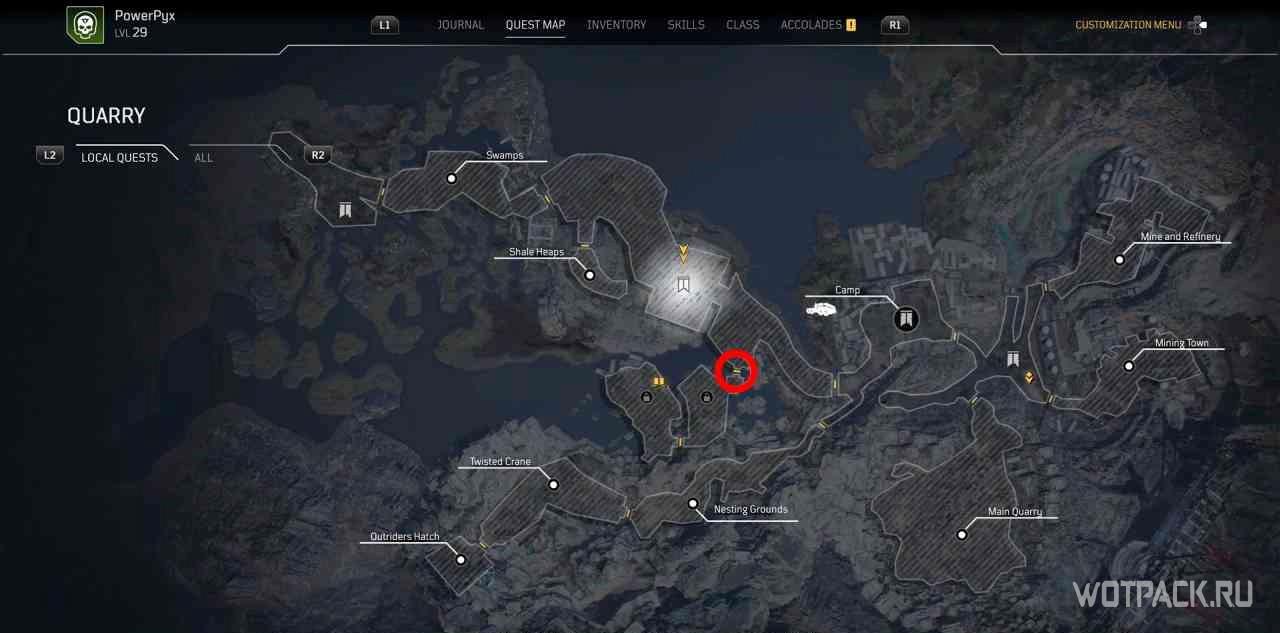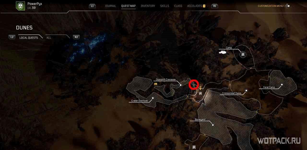 Чтобы активировать квест, нужно взаимодействовать с кучей костей рядом с точкой для быстрого путешествия “Расщелина”.
