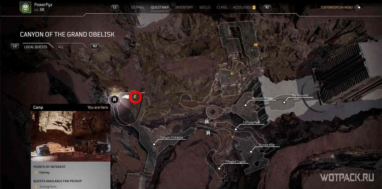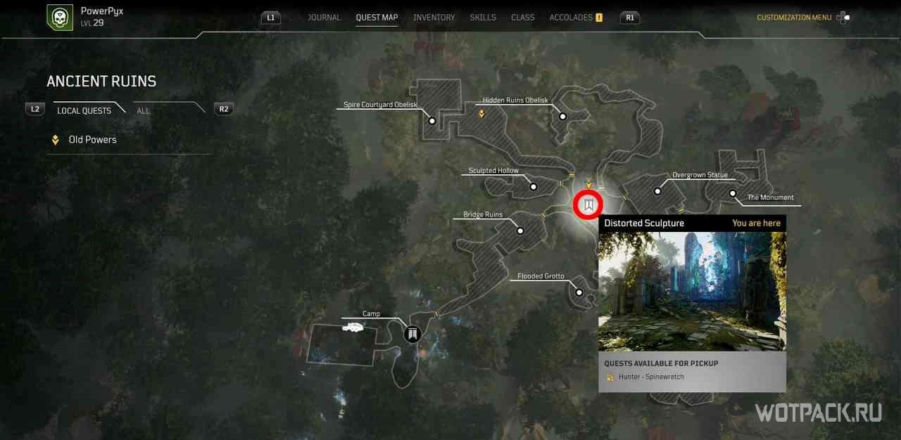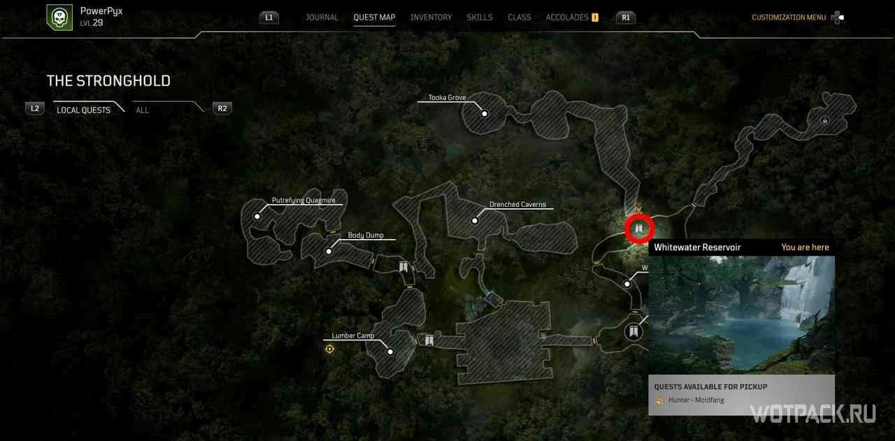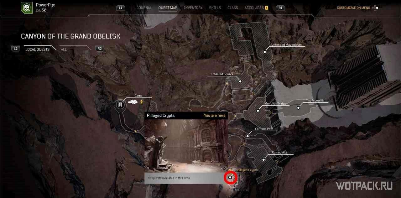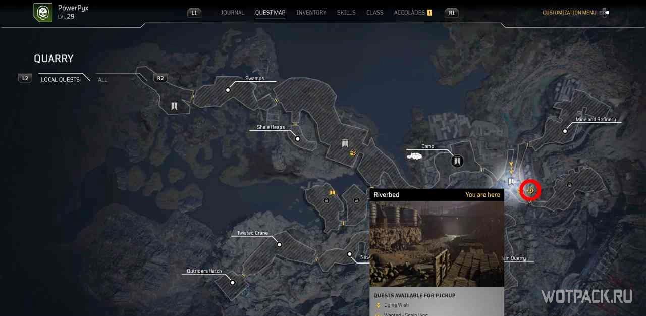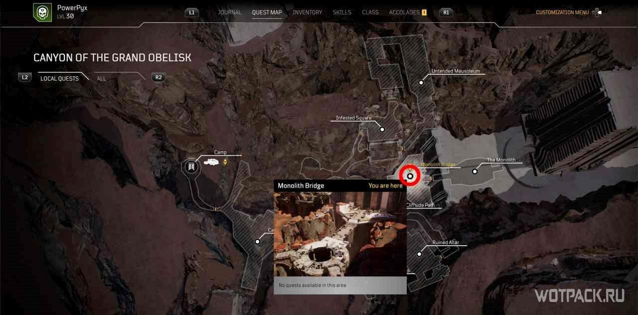 Чтобы активировать квест, нужно взаимодействовать с кучей костей рядом с точкой для быстрого путешествия “Расщелина”.