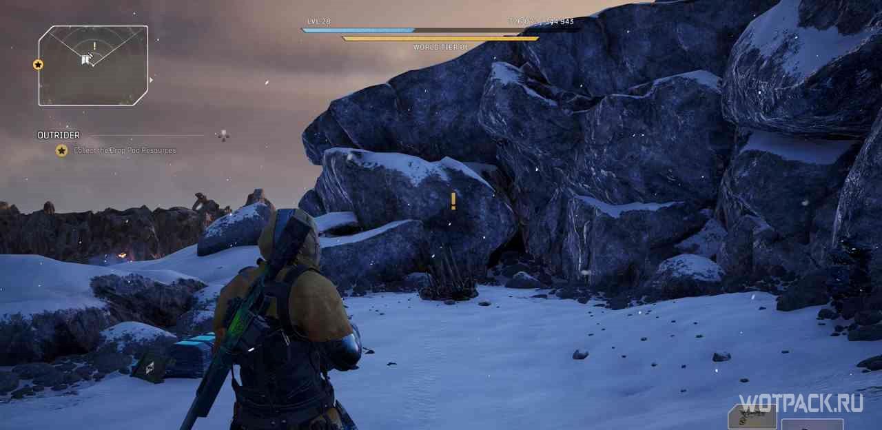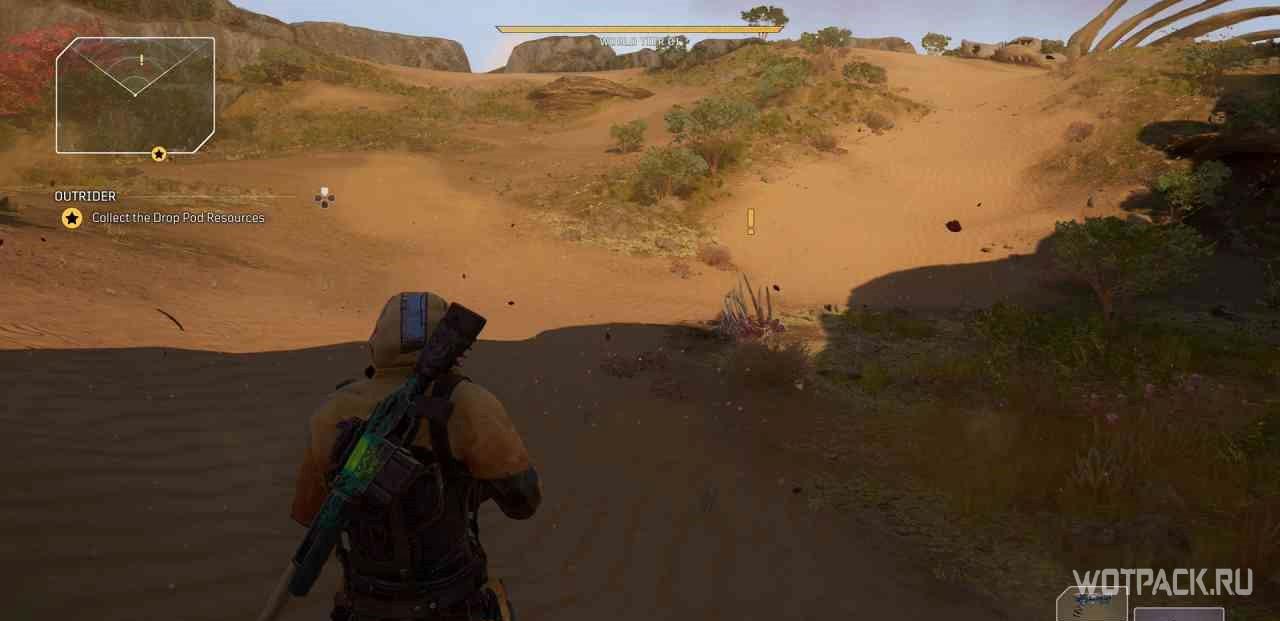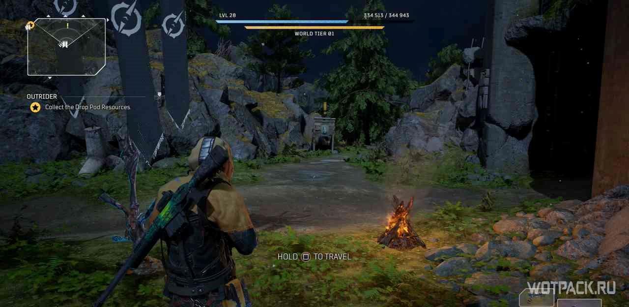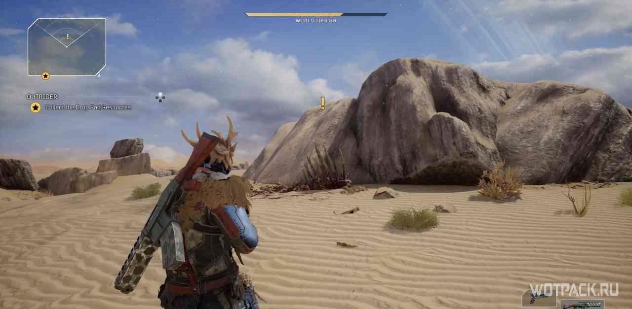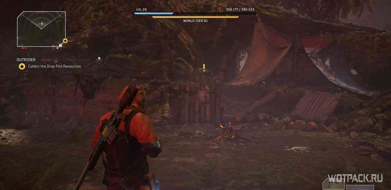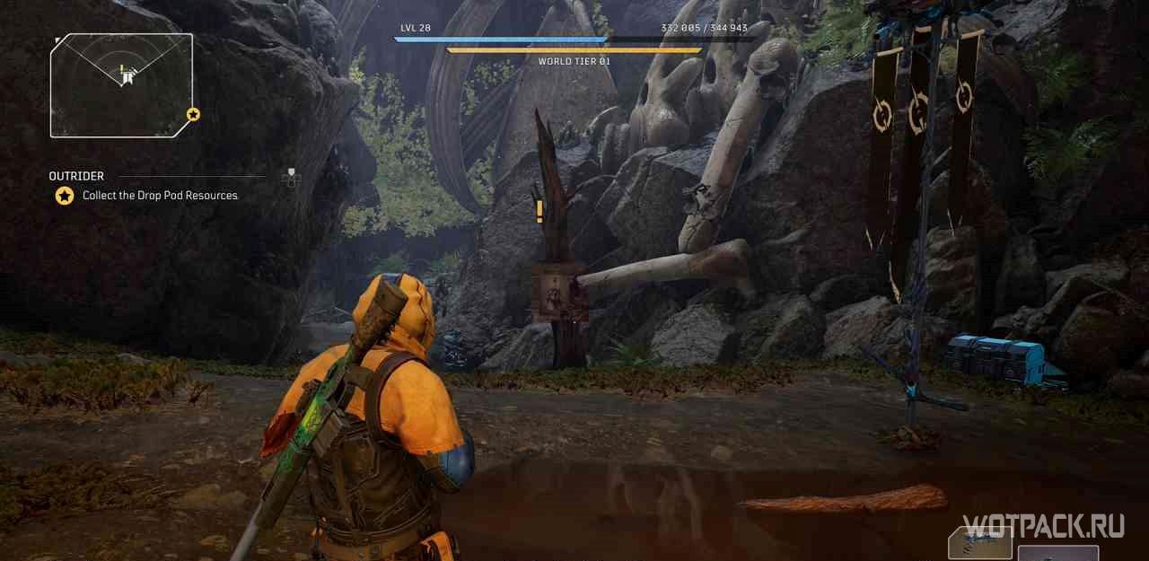 Когда игрок попадет в лагерь этой местности, на миникарте появится желтый восклицательный знак. Следуя по нему, надо изучить кости на границах привала.