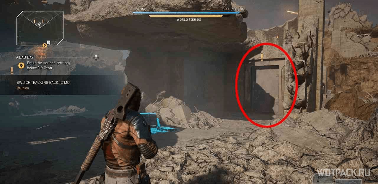 Есть секретная дверь, которая является обратным путем к области “Тропа утеса” (рядом от точки быстрого перемещения “Разбитый бронетранспортер”).