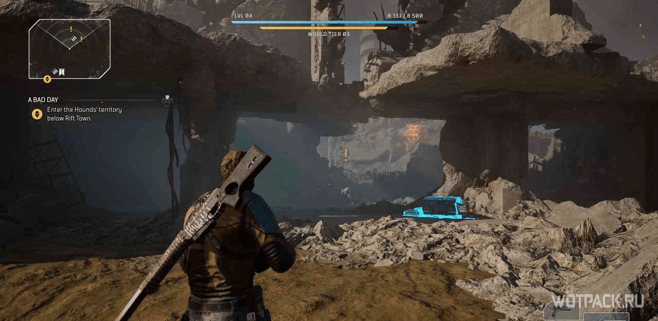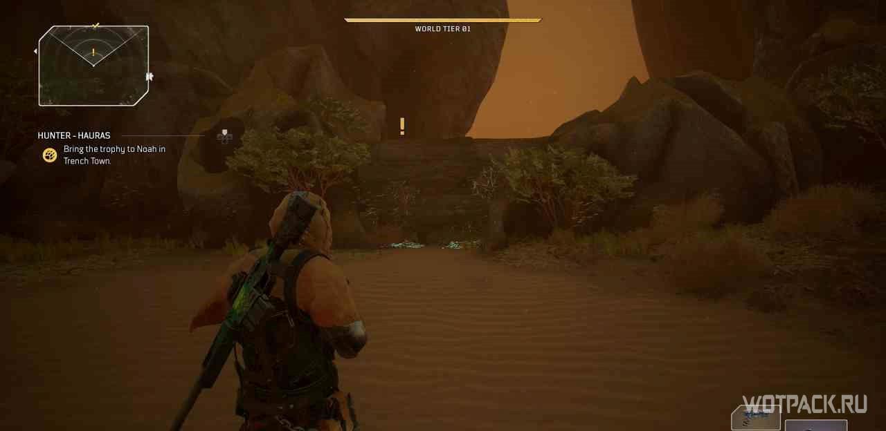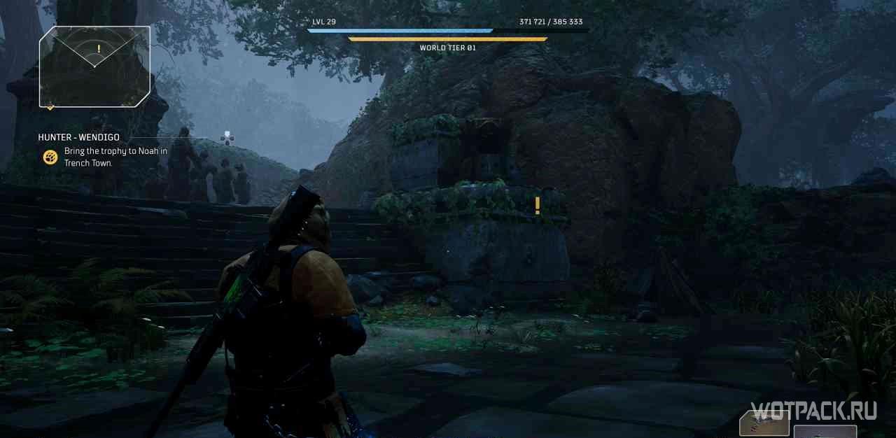 Рядом с точкой быстрого путешествия “Костяное ущелье” есть стена с желтым восклицательным знаком. С ней можно взаимодействовать, начав задание.