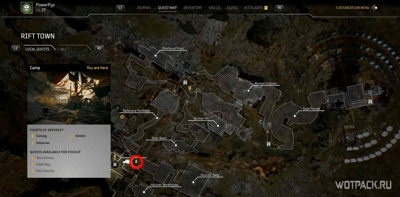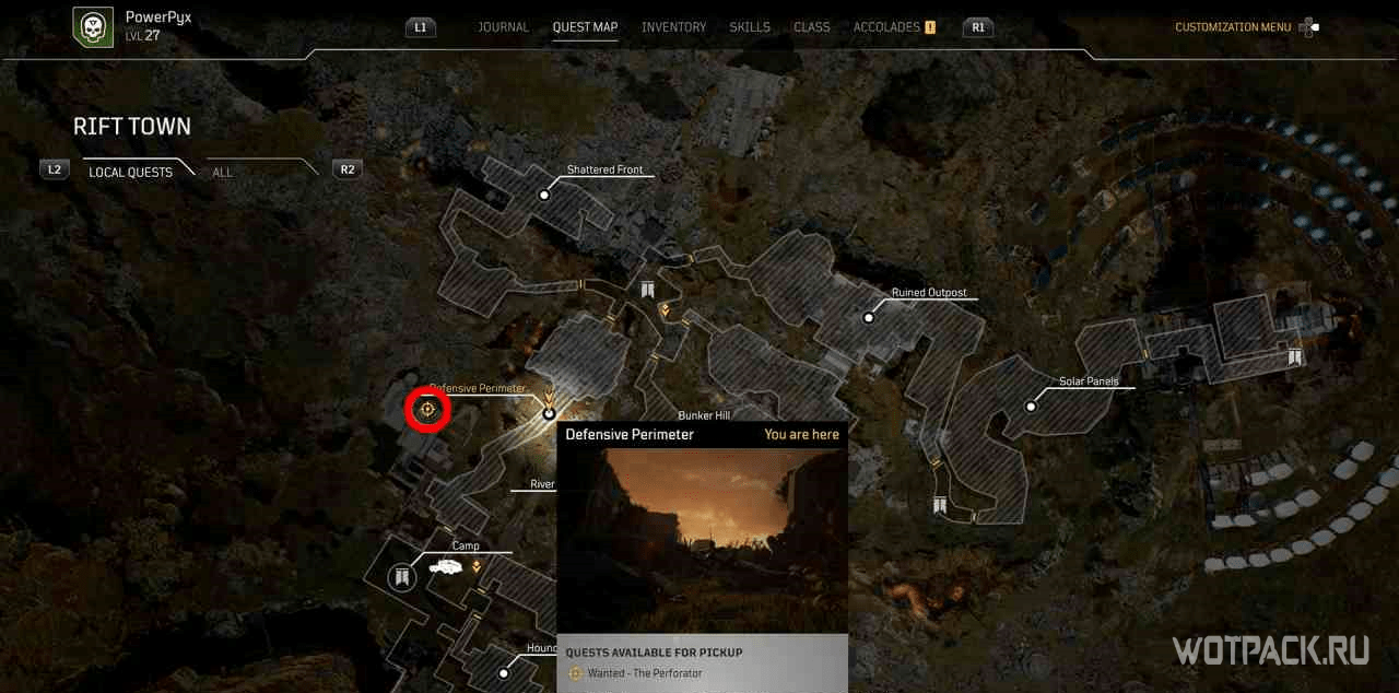 Из лагеря можно выйти через зал, в котором находится точка быстрого путешествия. Оттуда надо попасть в локацию “Оборонный периметр”, а затем подойти к плакату, висящему на стене, активировав задание.