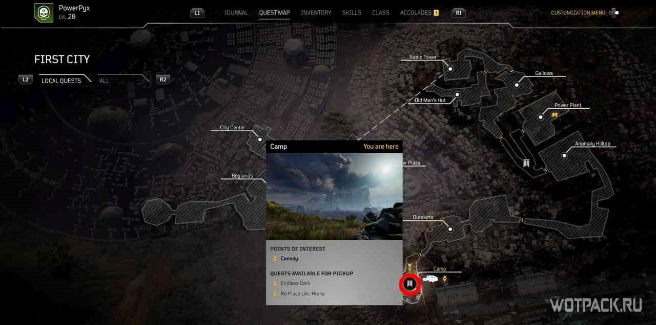 Чтобы взять задание, необходимо поговорить с неигровым персонажем в лагере, через которого осуществляется фаст тревел.