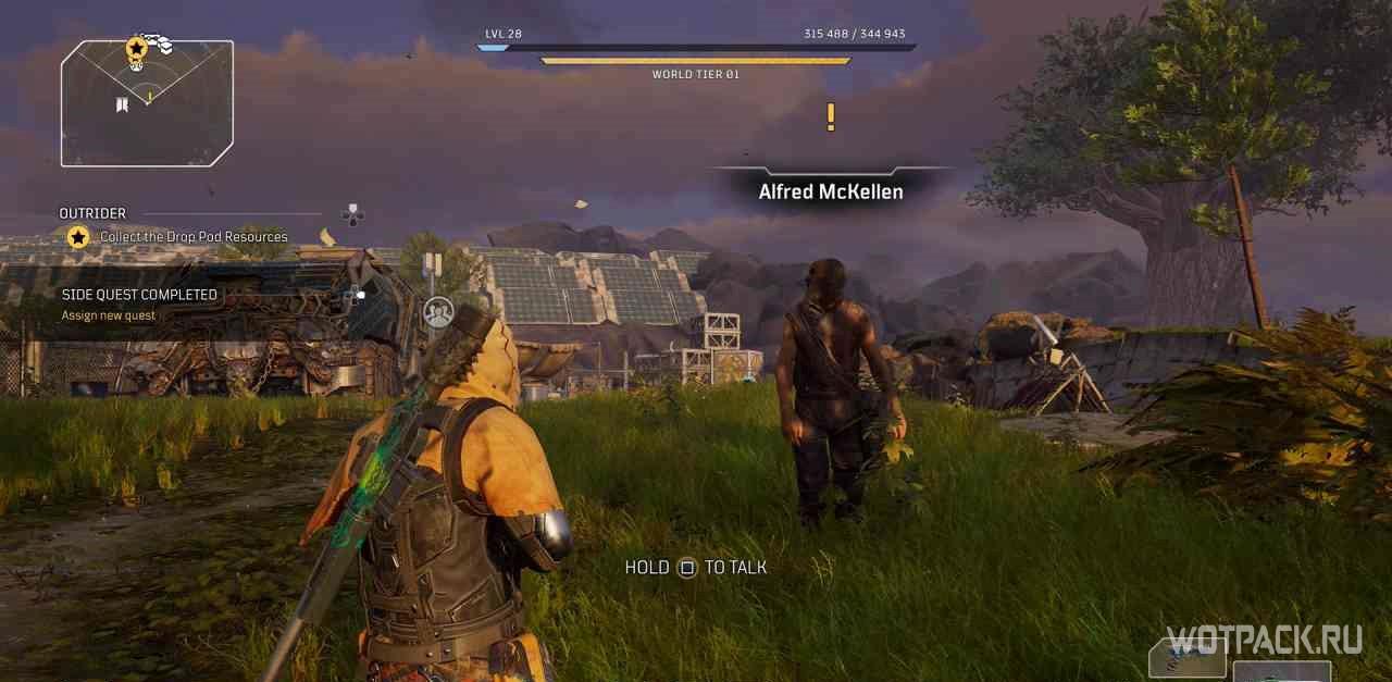 Для начала квеста нужно поговорить со стариком по имени Альфред МакКеллен. Он стоит напротив лагеря.
