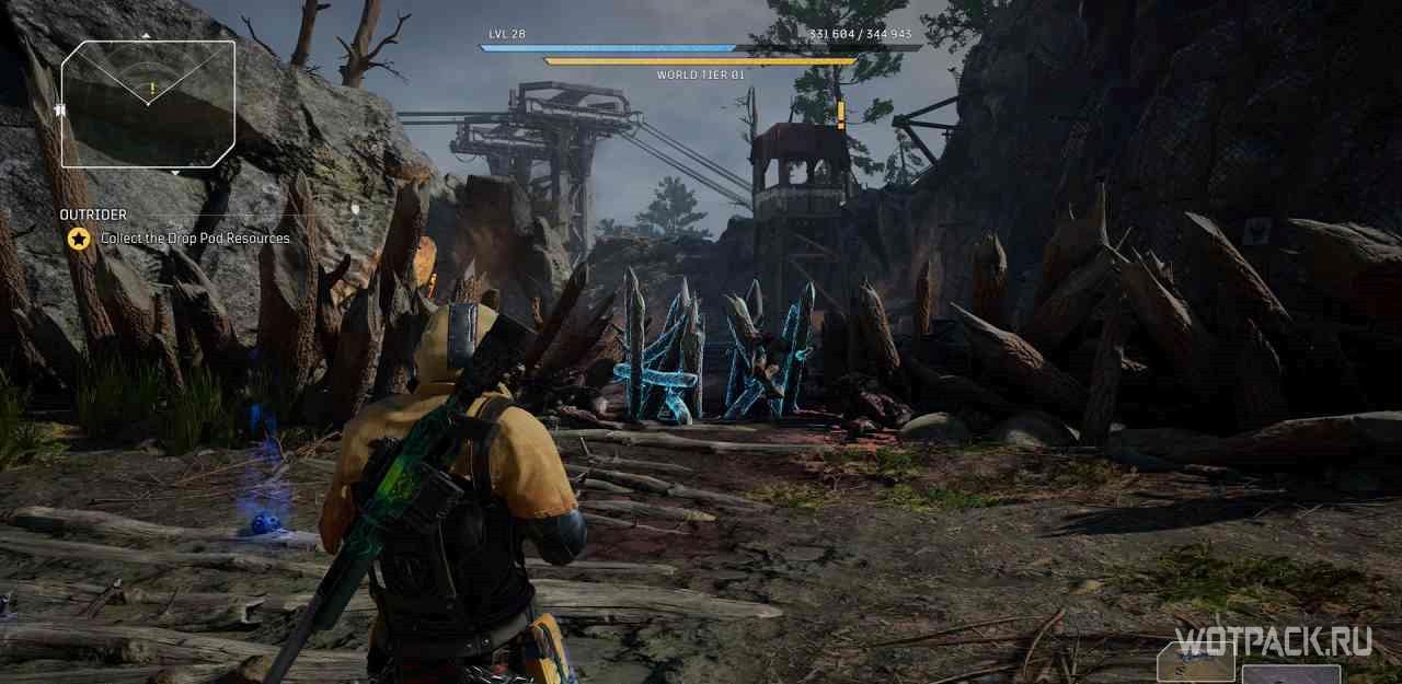 Рядом с пунктом быстрого перемещения “Лесная трасса” нужно взаимодействовать с деревянными шипами, над которыми отображается восклицательный знак квеста.