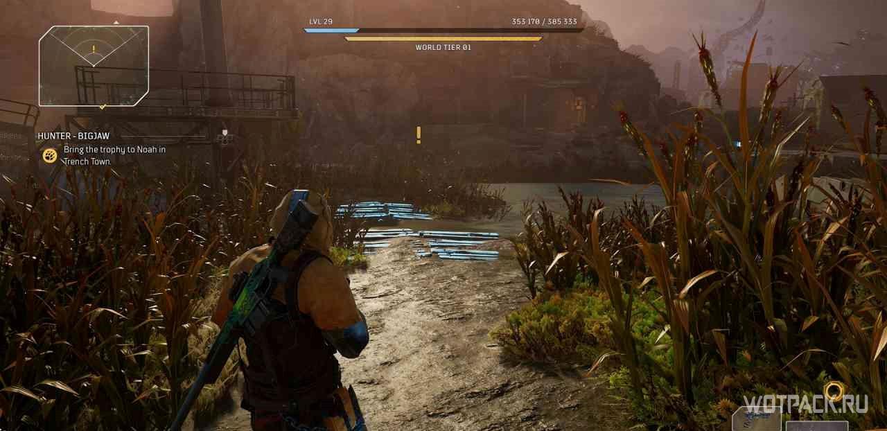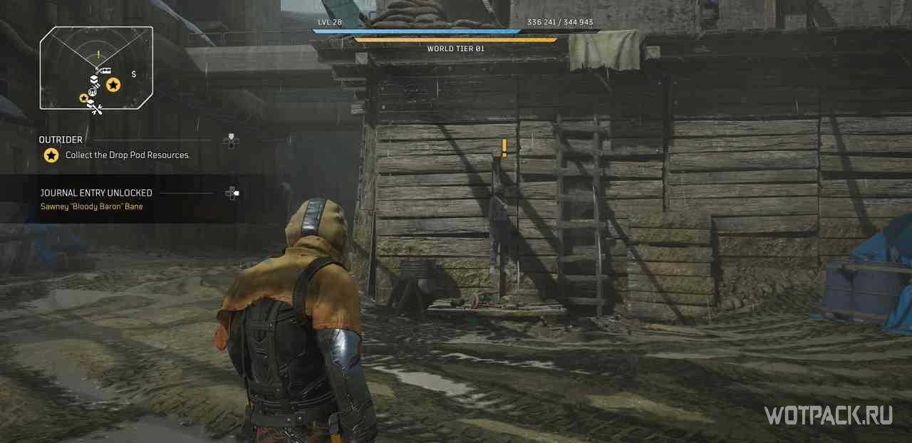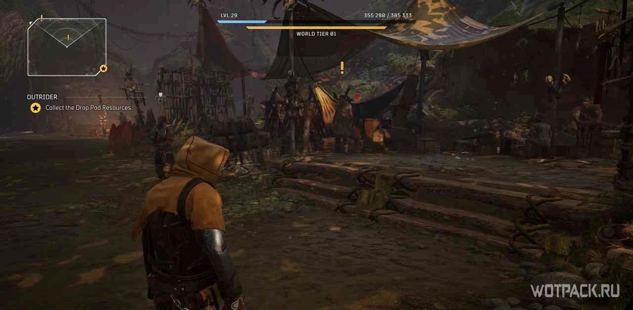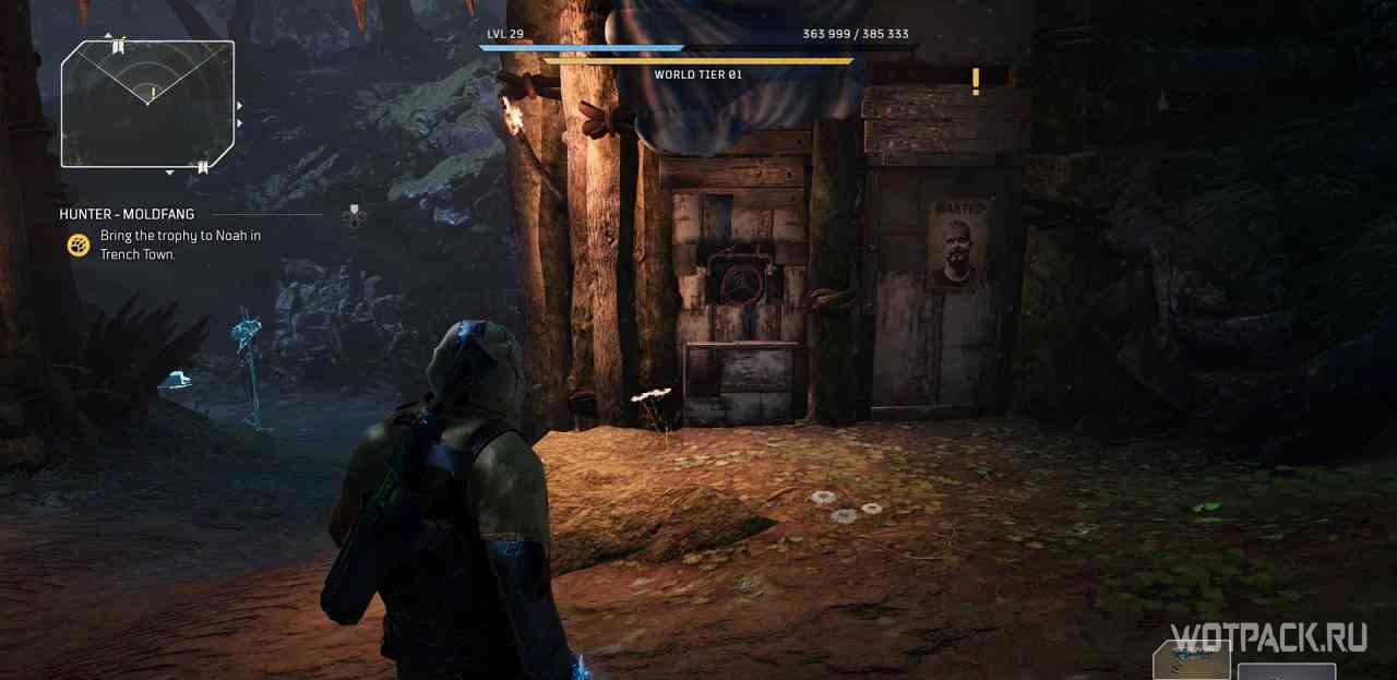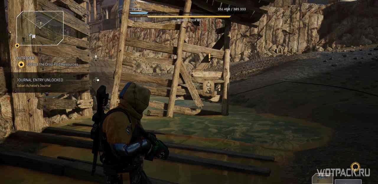 Когда игрок попадет в лагерь данной местности, на миникарте появится желтый восклицательный знак. Следуя по нему, надо прочесть объявление, которое находится чуть выше по лестнице.